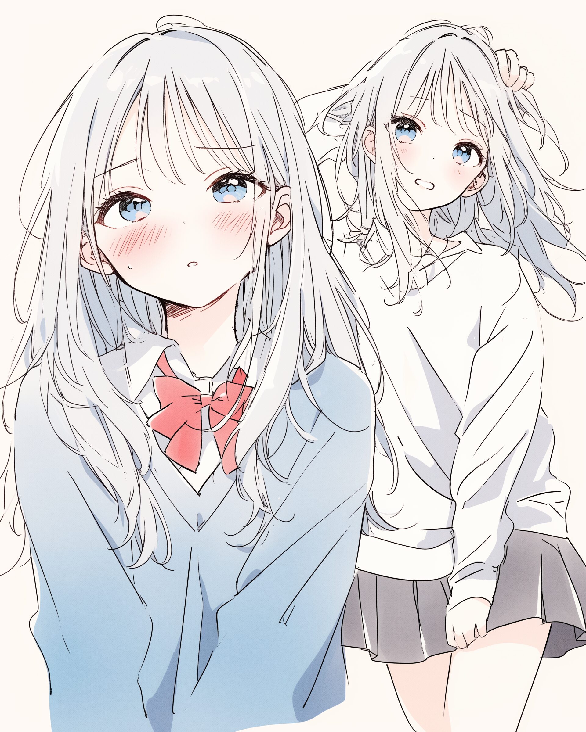 検索タグ:イラスト、ファッション、キャラクター、女性、女、女の子、女子、女の人、アニメ、漫画、マンガ、美人、美女、若い、かわいい、可愛い、カワイイ、人物、顔、美しい、綺麗、きれい、キレイ、アート、お洒落、挿絵、インスタ、Instagram、AI生成画像、fashion、コピースペース、銀髪、喜怒哀楽