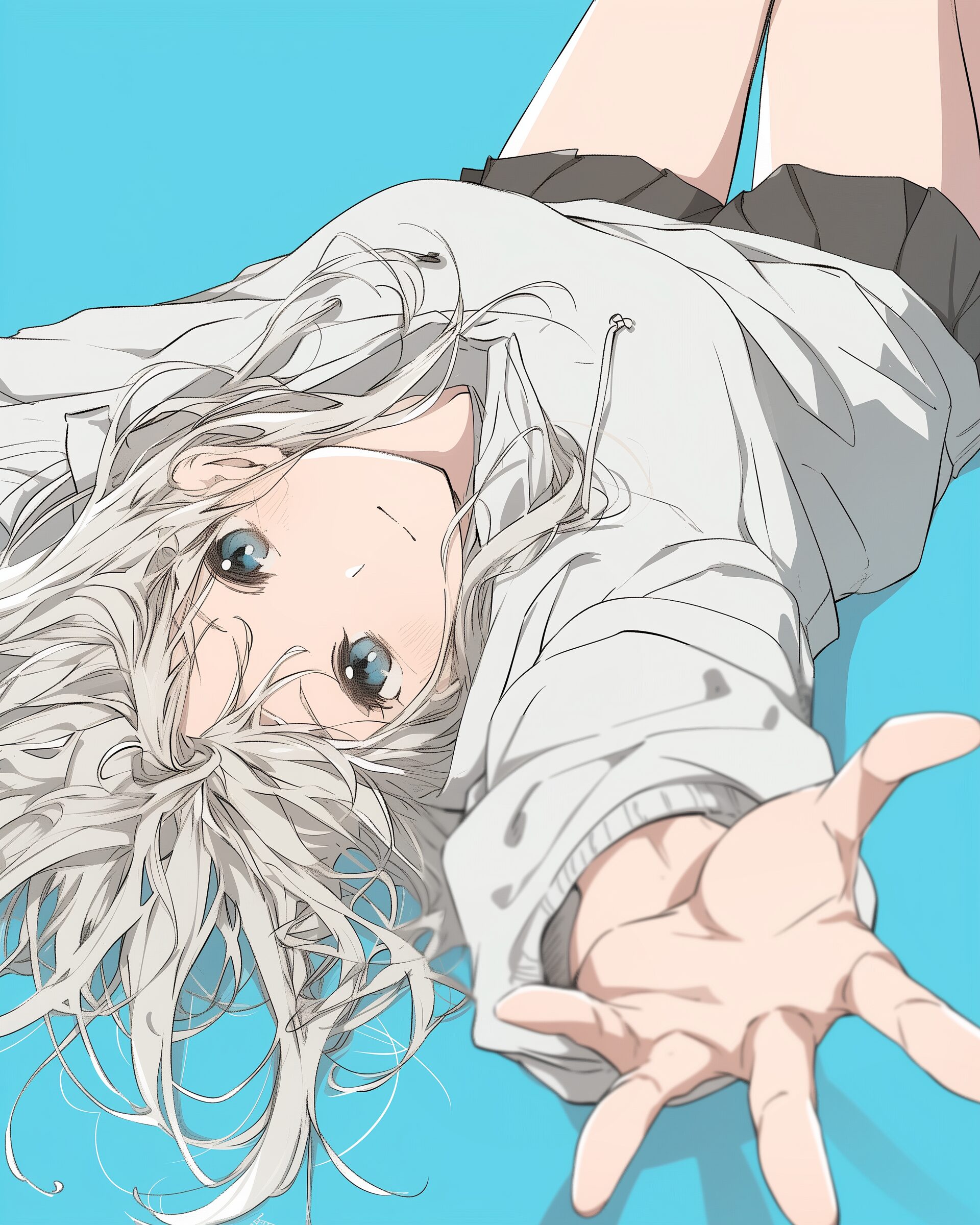 検索タグ:イラスト、ファッション、キャラクター、女性、女、女の子、女子、女の人、アニメ、漫画、マンガ、美人、美女、若い、かわいい、可愛い、カワイイ、人物、顔、美しい、綺麗、きれい、キレイ、アート、お洒落、挿絵、インスタ、Instagram、AI生成画像、fashion、コピースペース、銀髪、パーカー女子、寝転ぶ、寝転び、笑顔