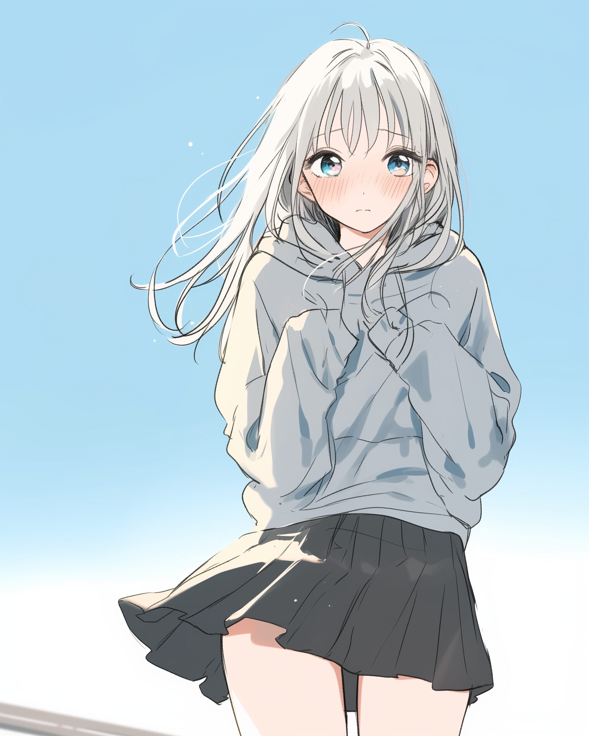 検索タグ:イラスト、ファッション、キャラクター、女性、女、女の子、女子、女の人、アニメ、漫画、マンガ、美人、美女、若い、かわいい、可愛い、カワイイ、人物、顔、美しい、綺麗、きれい、キレイ、アート、お洒落、挿絵、インスタ、Instagram、AI生成画像、fashion、コピースペース、銀髪、パーカー女子、恥ずかしい、照れる、照れくさい、緊張