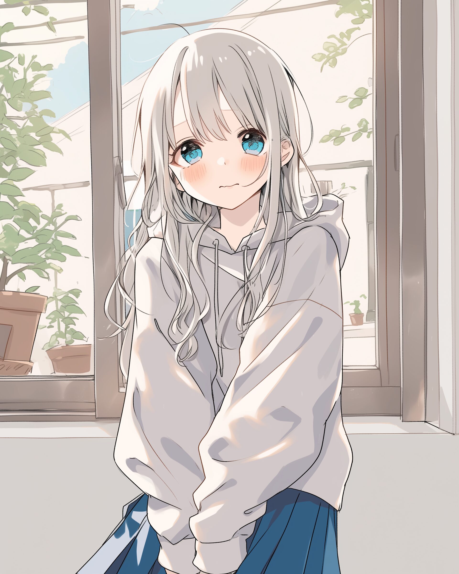 検索タグ:イラスト、ファッション、キャラクター、女性、女、女の子、女子、女の人、アニメ、漫画、マンガ、美人、美女、若い、かわいい、可愛い、カワイイ、人物、顔、美しい、綺麗、きれい、キレイ、アート、お洒落、挿絵、インスタ、Instagram、AI生成画像、fashion、コピースペース、銀髪、パーカー女子、恥ずかしい、照れる、照れくさい、緊張