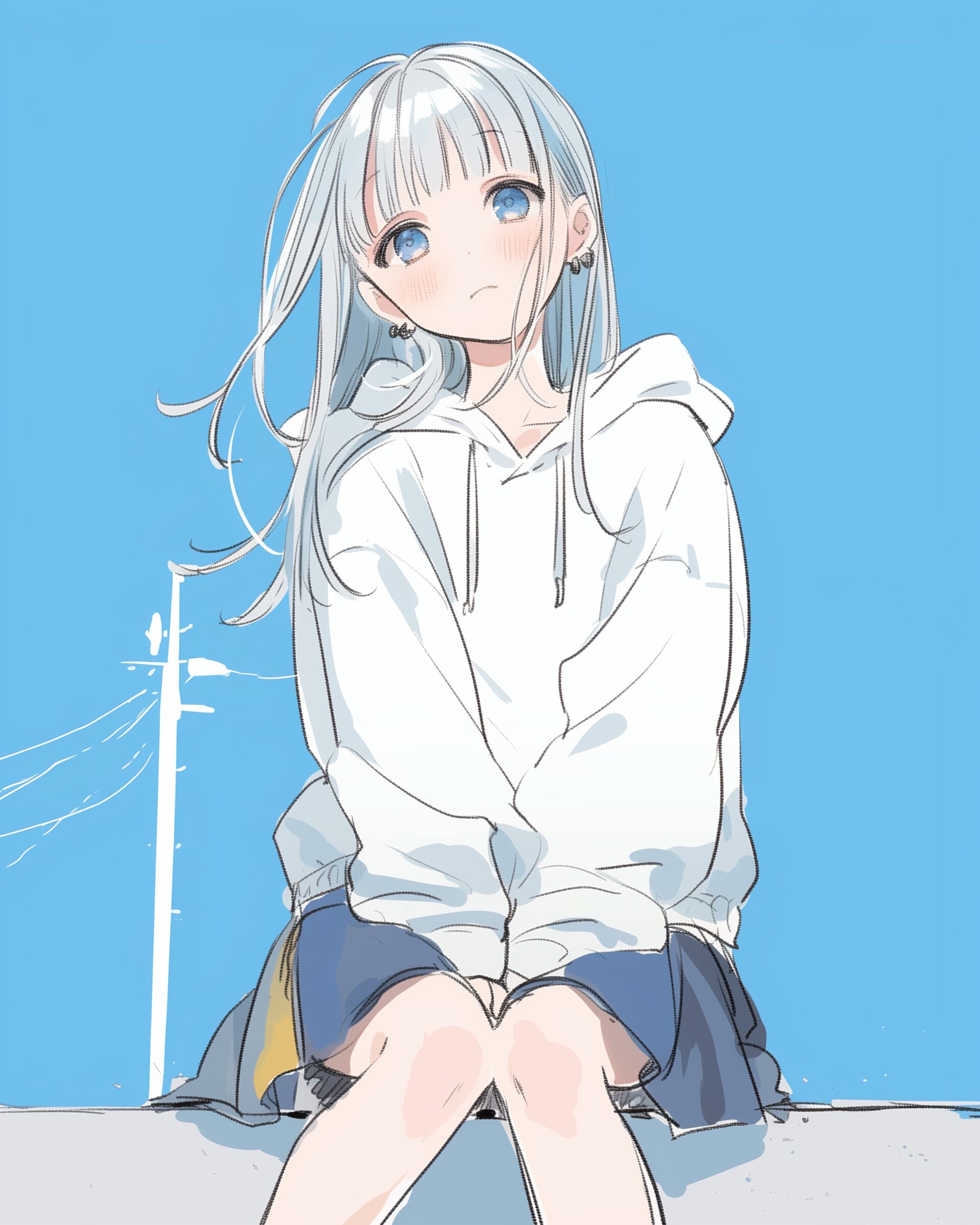 検索タグ:イラスト、ファッション、キャラクター、女性、女、女の子、女子、女の人、アニメ、漫画、マンガ、美人、美女、若い、かわいい、可愛い、カワイイ、人物、顔、美しい、綺麗、きれい、キレイ、アート、お洒落、挿絵、インスタ、Instagram、AI生成画像、fashion、コピースペース、銀髪、パーカー女子、恥ずかしい、照れる、照れくさい、緊張