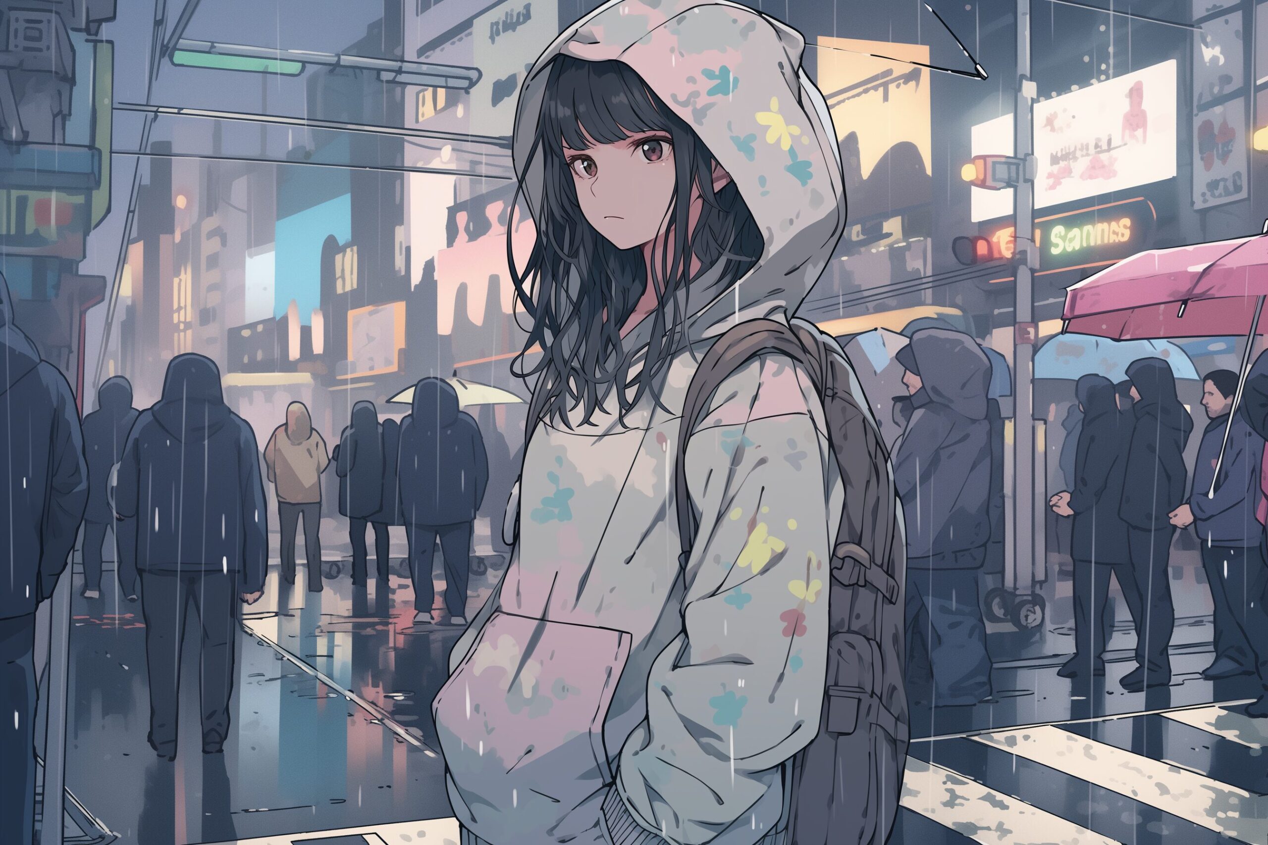 検索タグ:イラスト、女の子、女性、女子、萌え、萌えキャラ、アニメ、漫画、くつろぐ、コピースペース、可愛い、かわいい、カワイイ、雨、泣く、涙、悲しい、失恋、感情、cry、rain、rainy、雨の日、雨天、カッパ、パーカー、パーカー女子