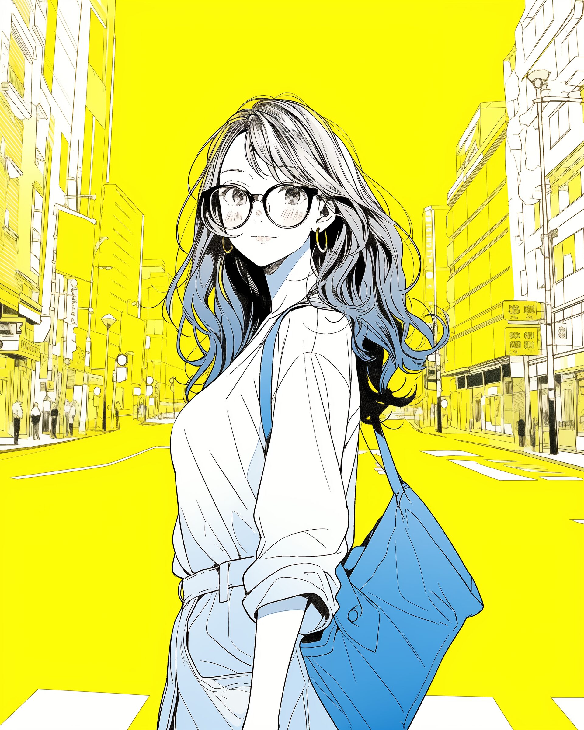 検索タグ:イラスト、ファッション、キャラクター、女性、女、女の子、女子、女の人、アニメ、漫画、マンガ、美人、美女、若い、かわいい、可愛い、カワイイ、人物、顔、美しい、綺麗、きれい、キレイ、アート、お洒落、女子高生、JK、挿絵、夏、春、パステルカラー、トップス、春服、インスタ、Instagram、青、黄色、ブルー、イエロー、Blue、yellow