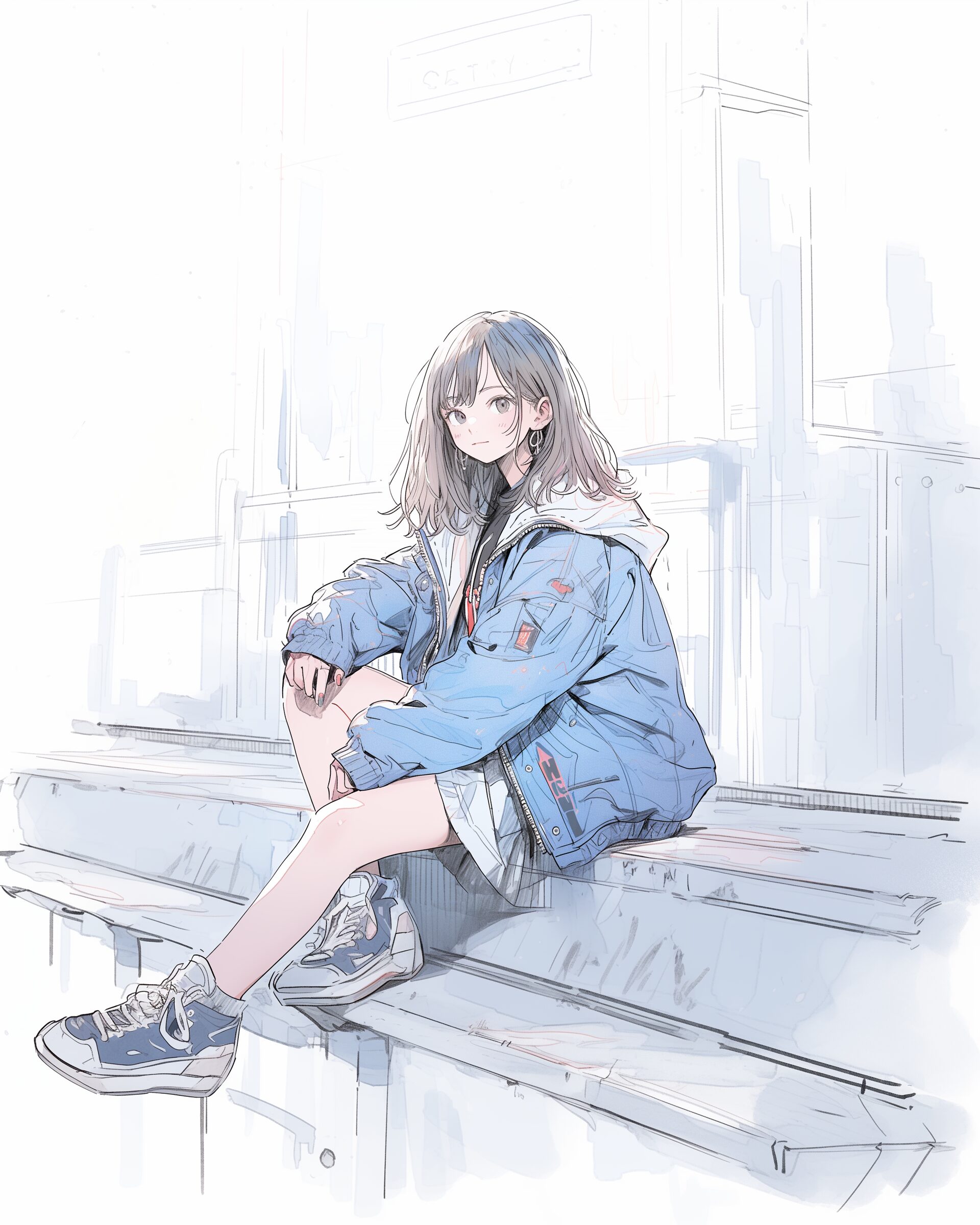 検索タグ:イラスト、ファッション、キャラクター、女性、女、女の子、女子、女の人、アニメ、漫画、マンガ、美人、美女、若い、かわいい、可愛い、カワイイ、人物、顔、美しい、綺麗、きれい、キレイ、アート、お洒落、女子高生、JK、挿絵、夏、春、パステルカラー、トップス、春服、hoodie、パーカー、パーカー女子、青、ブルー、BLUE