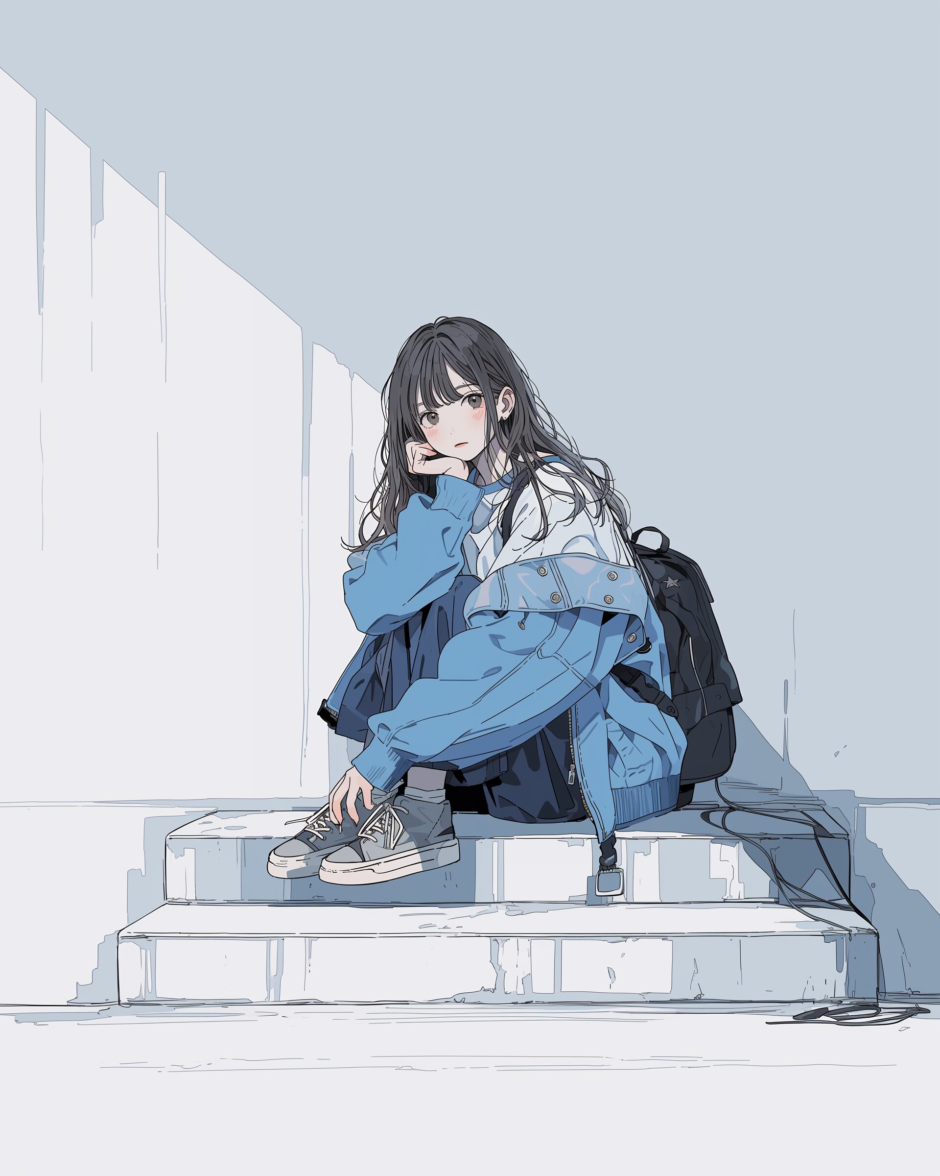 検索タグ:イラスト、ファッション、キャラクター、女性、女、女の子、女子、女の人、アニメ、漫画、マンガ、美人、美女、若い、かわいい、可愛い、カワイイ、人物、顔、美しい、綺麗、きれい、キレイ、アート、お洒落、女子高生、JK、挿絵、夏、春、パステルカラー、トップス、春服、hoodie、パーカー、パーカー女子、青、ブルー、BLUE