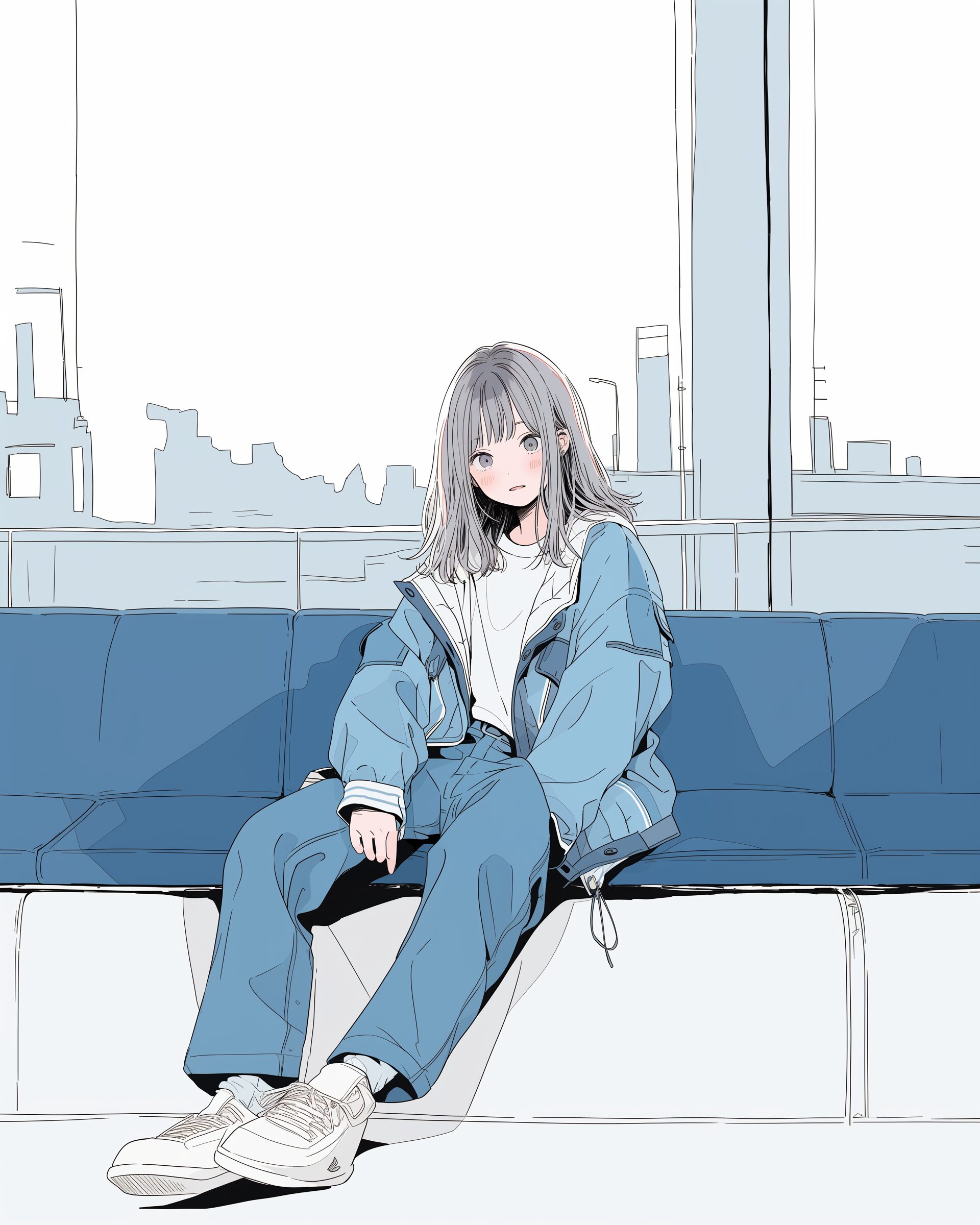 検索タグ:イラスト、ファッション、キャラクター、女性、女、女の子、女子、女の人、アニメ、漫画、マンガ、美人、美女、若い、かわいい、可愛い、カワイイ、人物、顔、美しい、綺麗、きれい、キレイ、アート、お洒落、女子高生、JK、挿絵、夏、春、パステルカラー、トップス、春服、hoodie、パーカー、パーカー女子、青、ブルー、BLUE