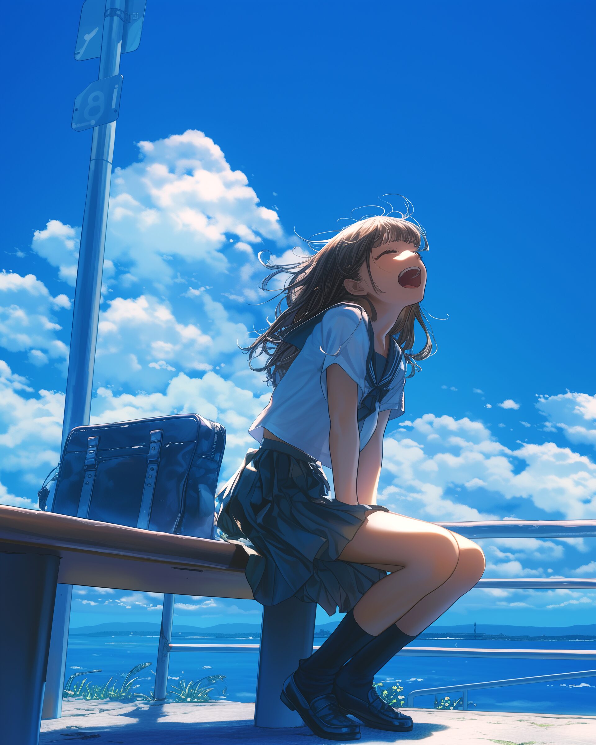 検索タグ:イラスト、ファッション、キャラクター、女性、女、女の子、女子、女の人、アニメ、漫画、マンガ、美人、美女、若い、かわいい、可愛い、カワイイ、人物、顔、美しい、綺麗、きれい、キレイ、アート、お洒落、女子高生、JK、挿絵、夏、春、パステルカラー、春服、インスタ、Instagram、夏、夏服、summer、fashion、サムネイル、アイキャッチ、コピースペース、青空、空、雲、くも、駅、電車、座る