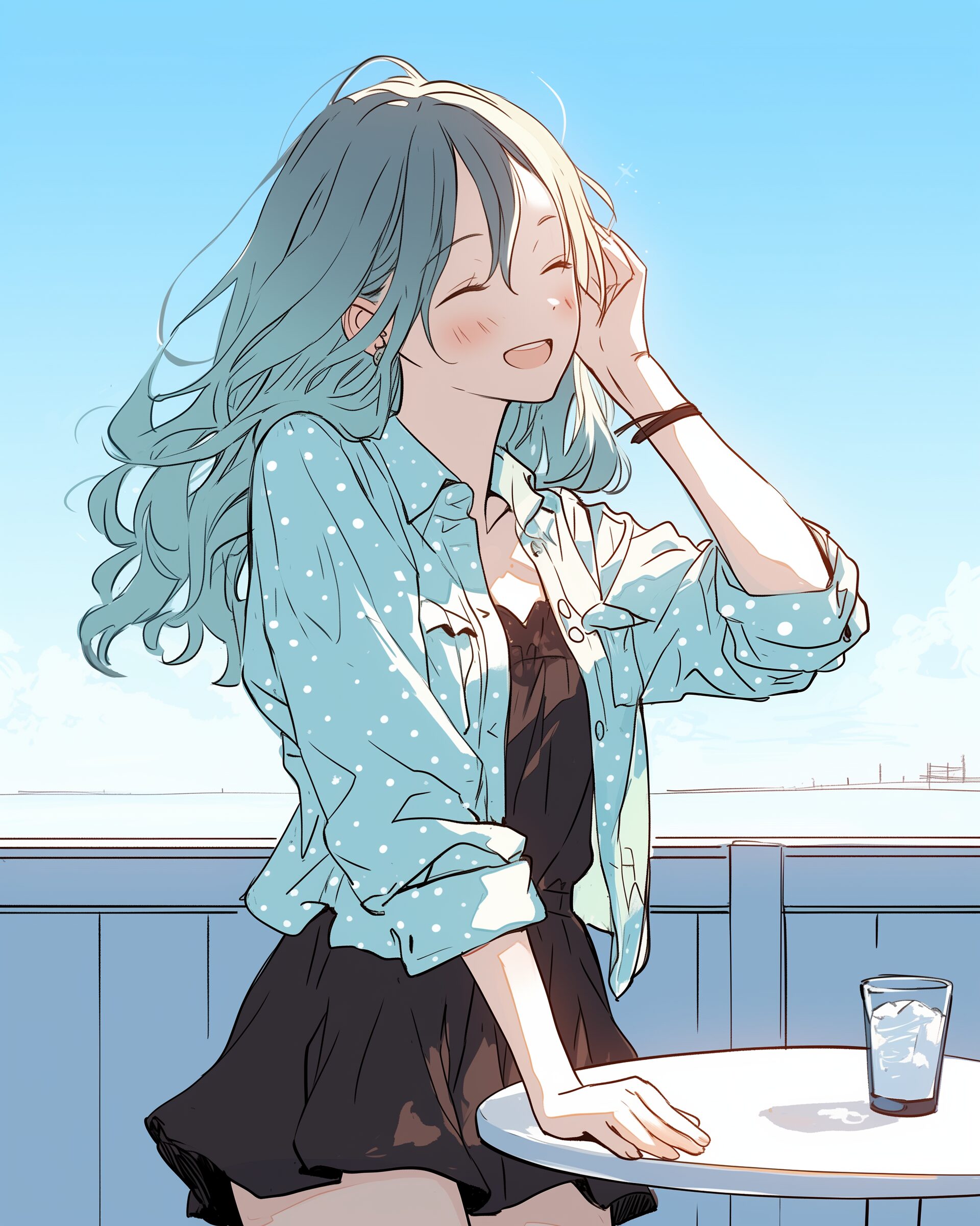 検索タグ:イラスト、ファッション、キャラクター、女性、女、女の子、女子、女の人、アニメ、漫画、マンガ、美人、美女、若い、かわいい、可愛い、カワイイ、人物、顔、美しい、綺麗、きれい、キレイ、アート、お洒落、女子高生、JK、挿絵、夏、春、パステルカラー、春服、インスタ、Instagram、夏、夏服、summer、fashion、青空、緑、グリーン、Green