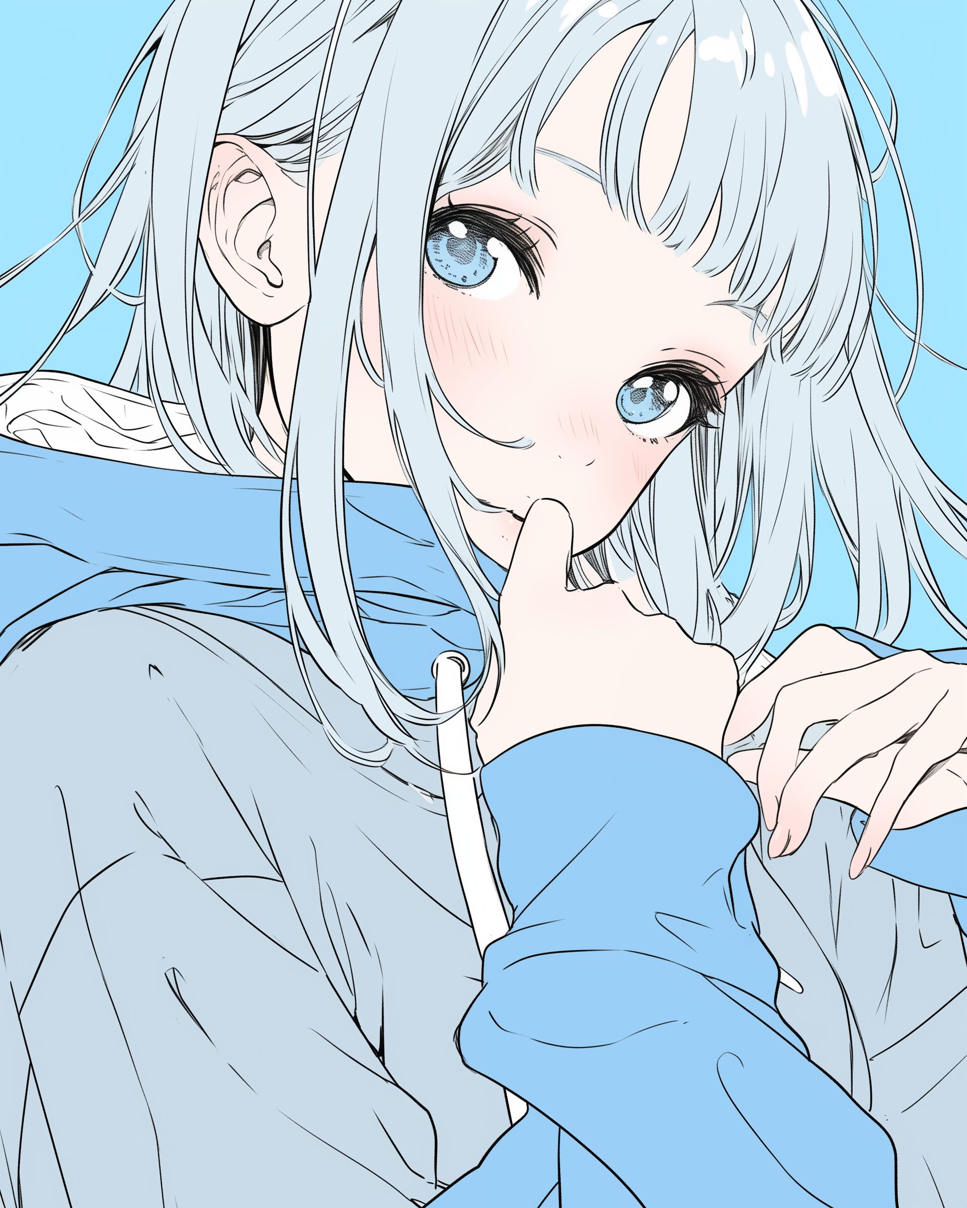 検索タグ:イラスト、ファッション、キャラクター、女性、女、女の子、女子、女の人、アニメ、漫画、マンガ、美人、美女、若い、かわいい、可愛い、カワイイ、人物、顔、美しい、綺麗、きれい、キレイ、アート、お洒落、挿絵、インスタ、Instagram、AI生成画像、fashion、コピースペース、銀髪、笑顔、パーカー女子、顔のアップ、アイコン画像