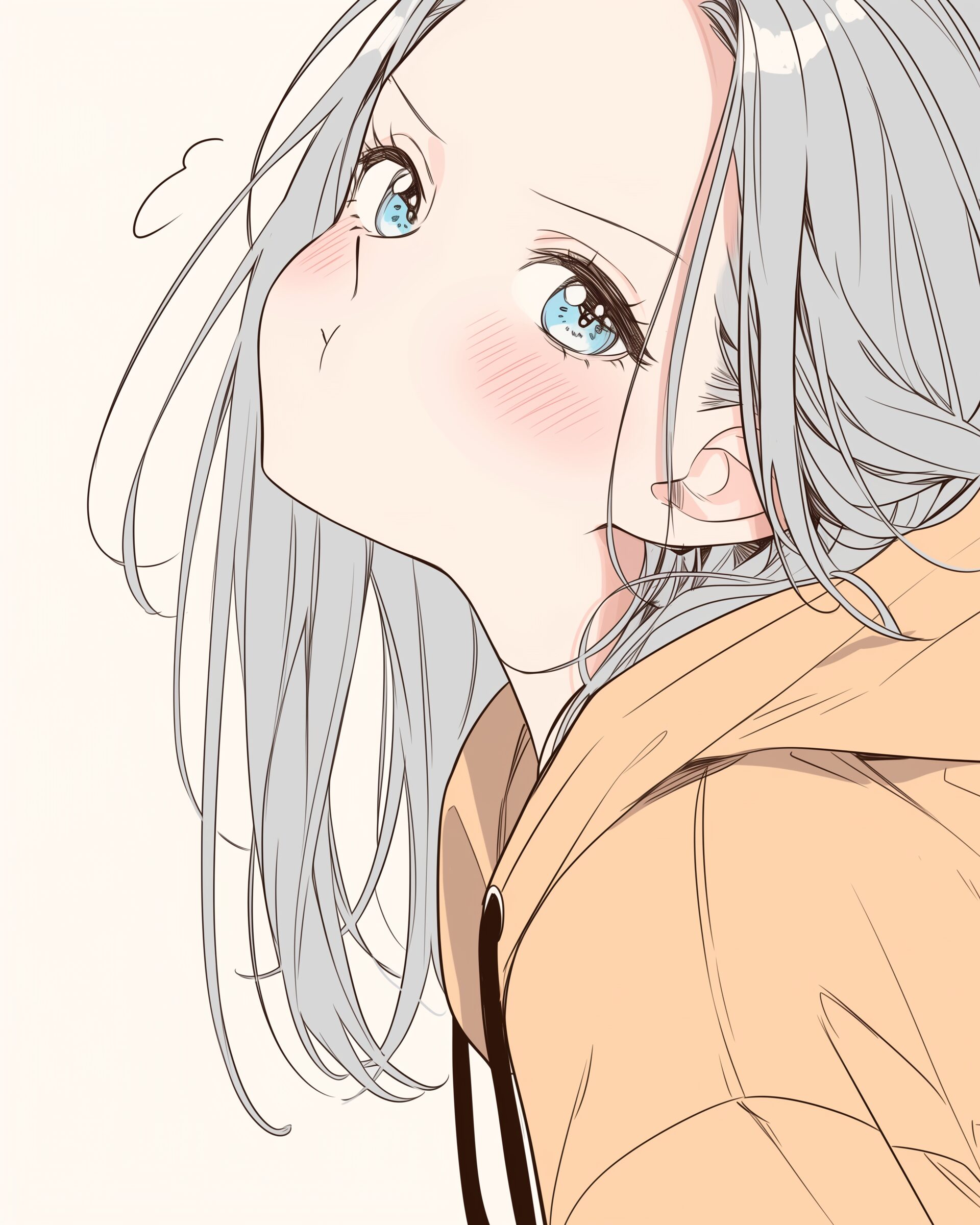 検索タグ:イラスト、ファッション、キャラクター、女性、女、女の子、女子、女の人、アニメ、漫画、マンガ、美人、美女、若い、かわいい、可愛い、カワイイ、人物、顔、美しい、綺麗、きれい、キレイ、アート、お洒落、挿絵、インスタ、Instagram、AI生成画像、fashion、コピースペース、銀髪、笑顔、パーカー女子、顔のアップ、アイコン画像