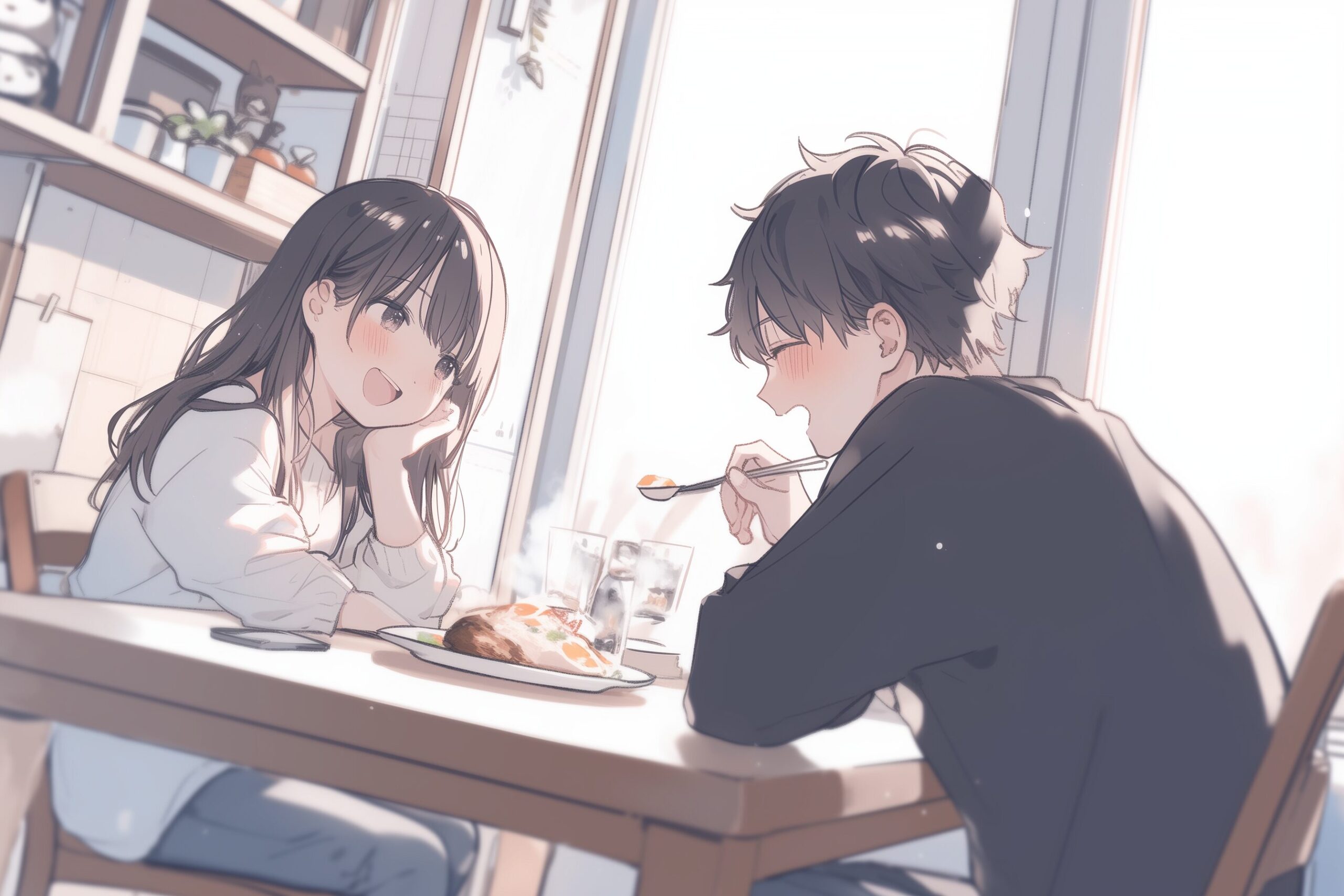 検索タグ:イラスト、ファッション、キャラクター、女性、女、女の子、女子、女の人、アニメ、漫画、マンガ、美人、美女、若い、かわいい、可愛い、カワイイ、人物、顔、美しい、綺麗、きれい、キレイ、アート、お洒落、挿絵、インスタ、Instagram、AI生成画像、コピースペース、カップル、恋人、愛、恋、恋愛、黒髪、笑顔、仲良し、男、男性、夫婦、寄り添う、食卓、食事、団欒