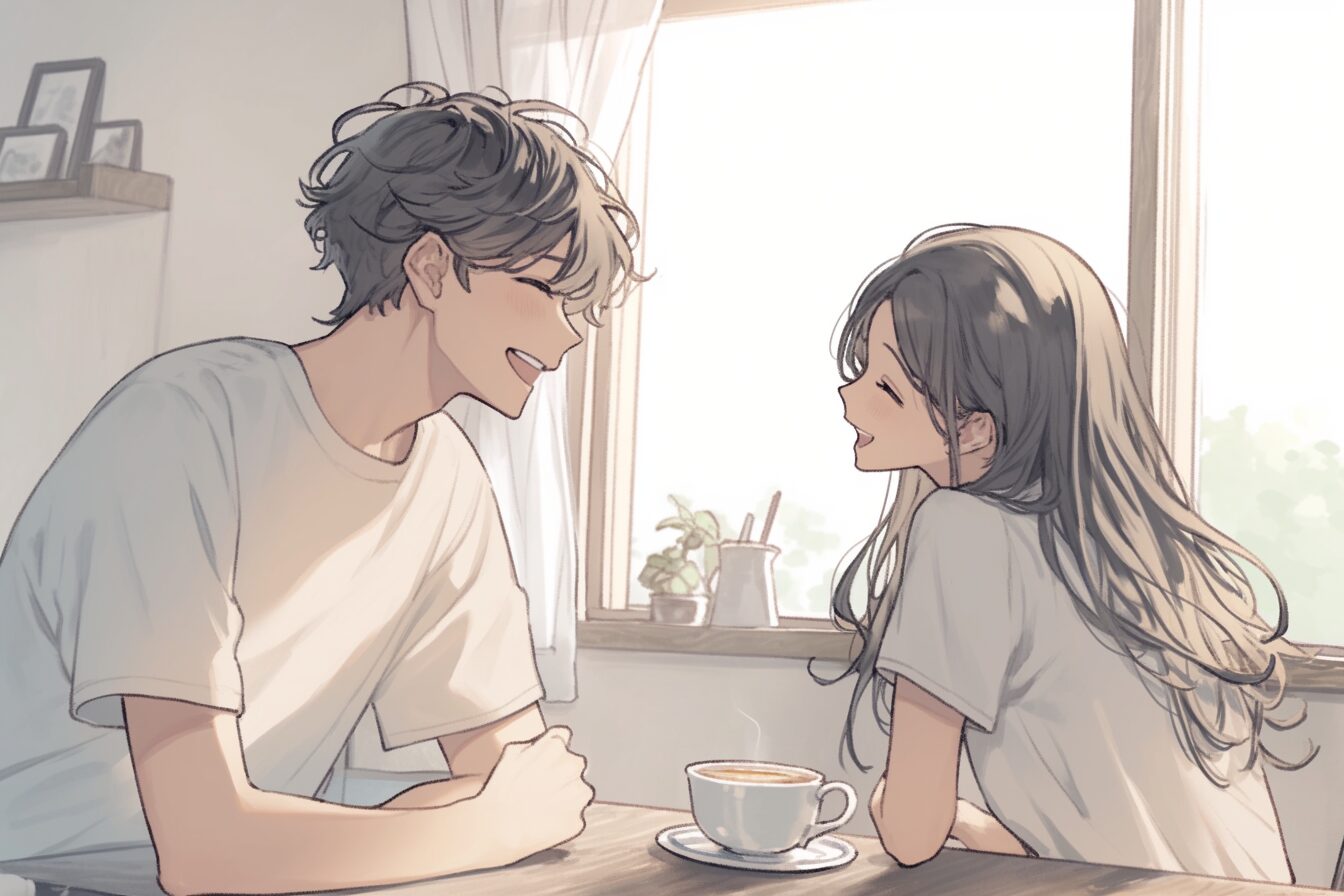 検索タグ:イラスト、ファッション、キャラクター、女性、女、女の子、女子、女の人、アニメ、漫画、マンガ、美人、美女、若い、かわいい、可愛い、カワイイ、人物、顔、美しい、綺麗、きれい、キレイ、アート、お洒落、挿絵、インスタ、Instagram、AI生成画像、fashion、コピースペース、ロングヘア、黒髪、カップル、恋人、男性、男、男の人、恋愛、恋、笑顔、食事、朝食、モーニング、朝ごはん