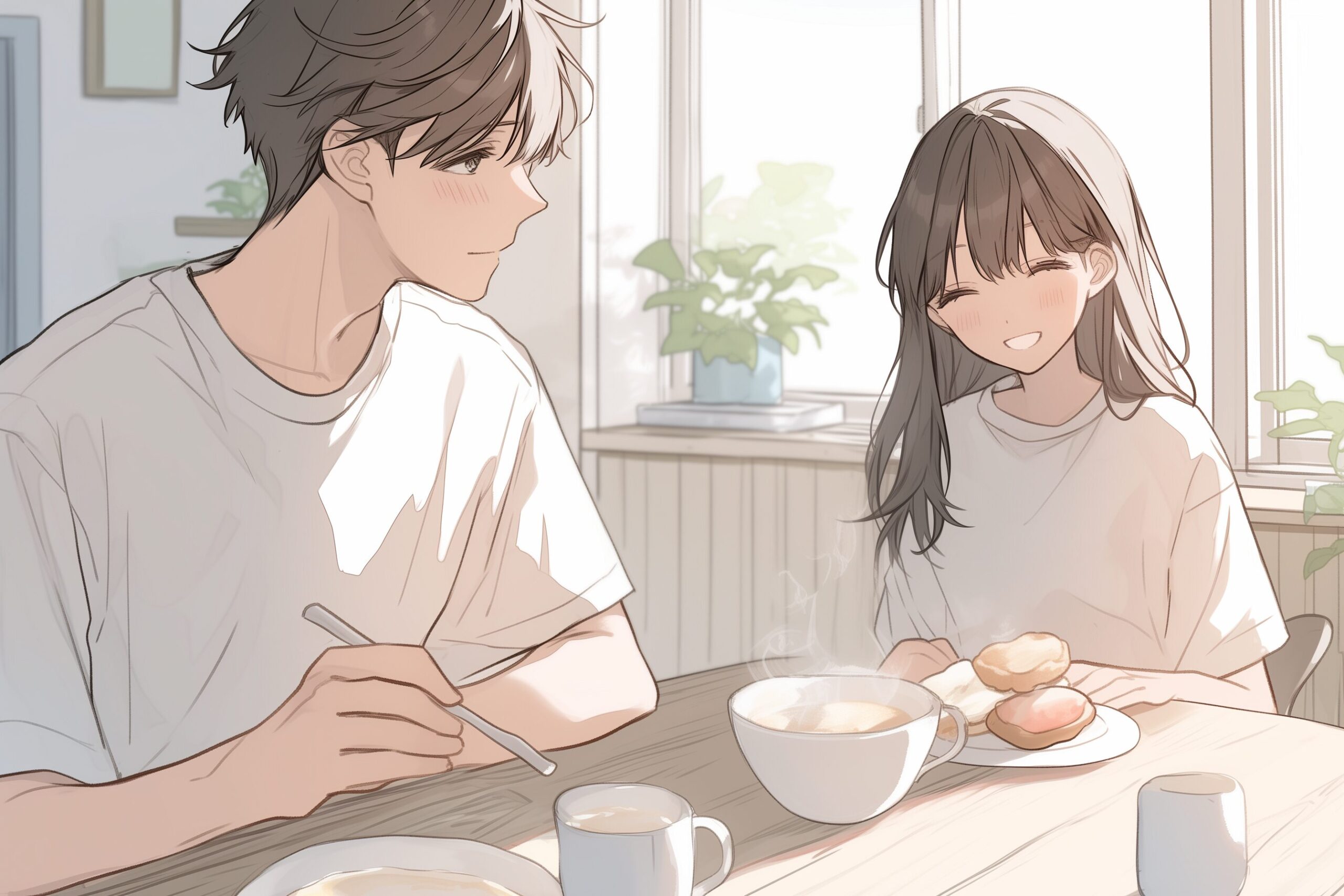 検索タグ:イラスト、ファッション、キャラクター、女性、女、女の子、女子、女の人、アニメ、漫画、マンガ、美人、美女、若い、かわいい、可愛い、カワイイ、人物、顔、美しい、綺麗、きれい、キレイ、アート、お洒落、挿絵、インスタ、Instagram、AI生成画像、fashion、コピースペース、ロングヘア、黒髪、カップル、恋人、男性、男、男の人、恋愛、恋、笑顔、食事、朝食、モーニング、朝ごはん