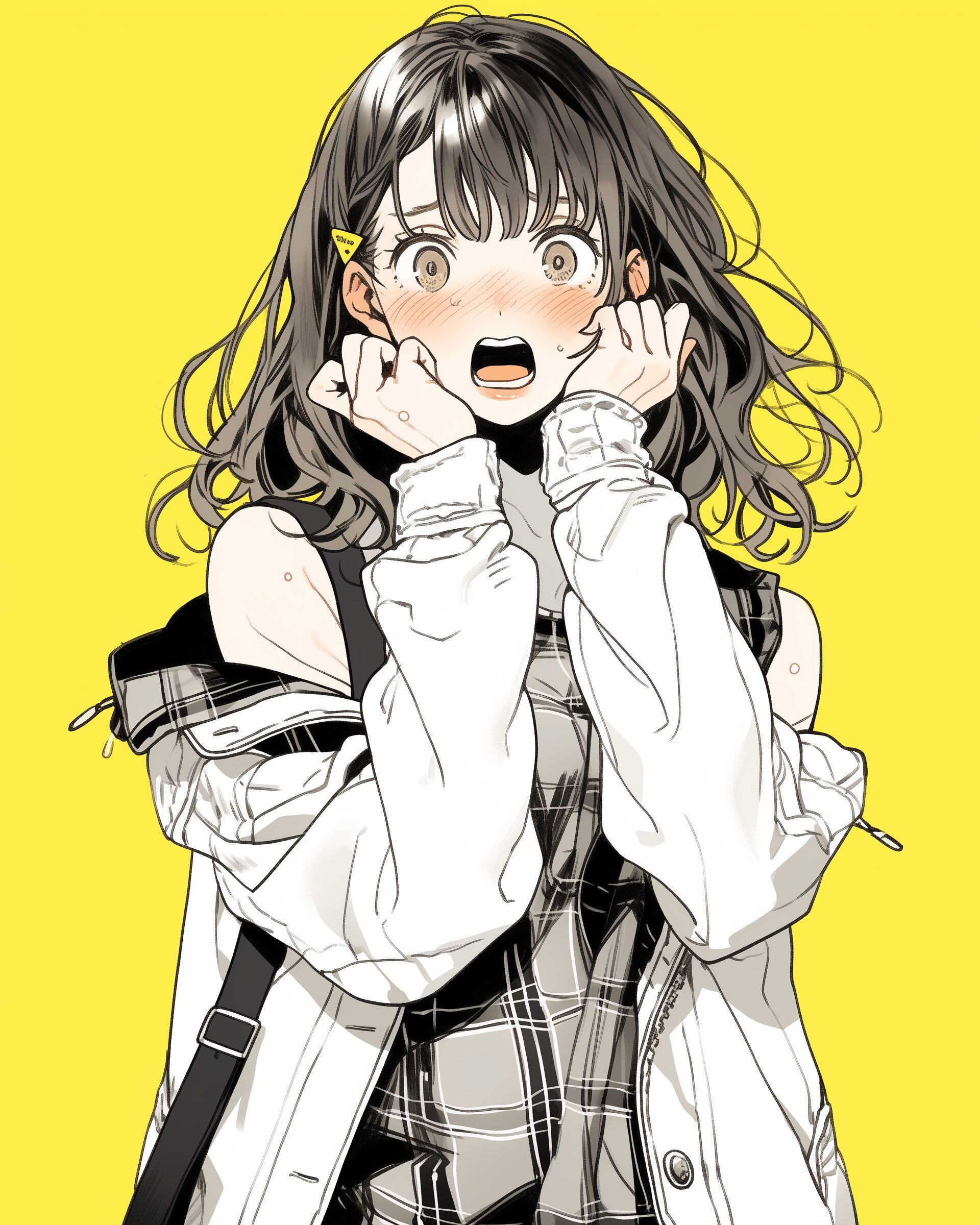 検索タグ:イラスト、ファッション、キャラクター、女性、女、女の子、女子、女の人、アニメ、漫画、マンガ、美人、美女、若い、かわいい、可愛い、カワイイ、人物、顔、美しい、綺麗、きれい、キレイ、アート、お洒落、女子高生、JK、挿絵、夏、春、パステルカラー、トップス、春服、インスタ、Instagram、、黄色、イエロー、yellow、驚く、驚愕、驚き