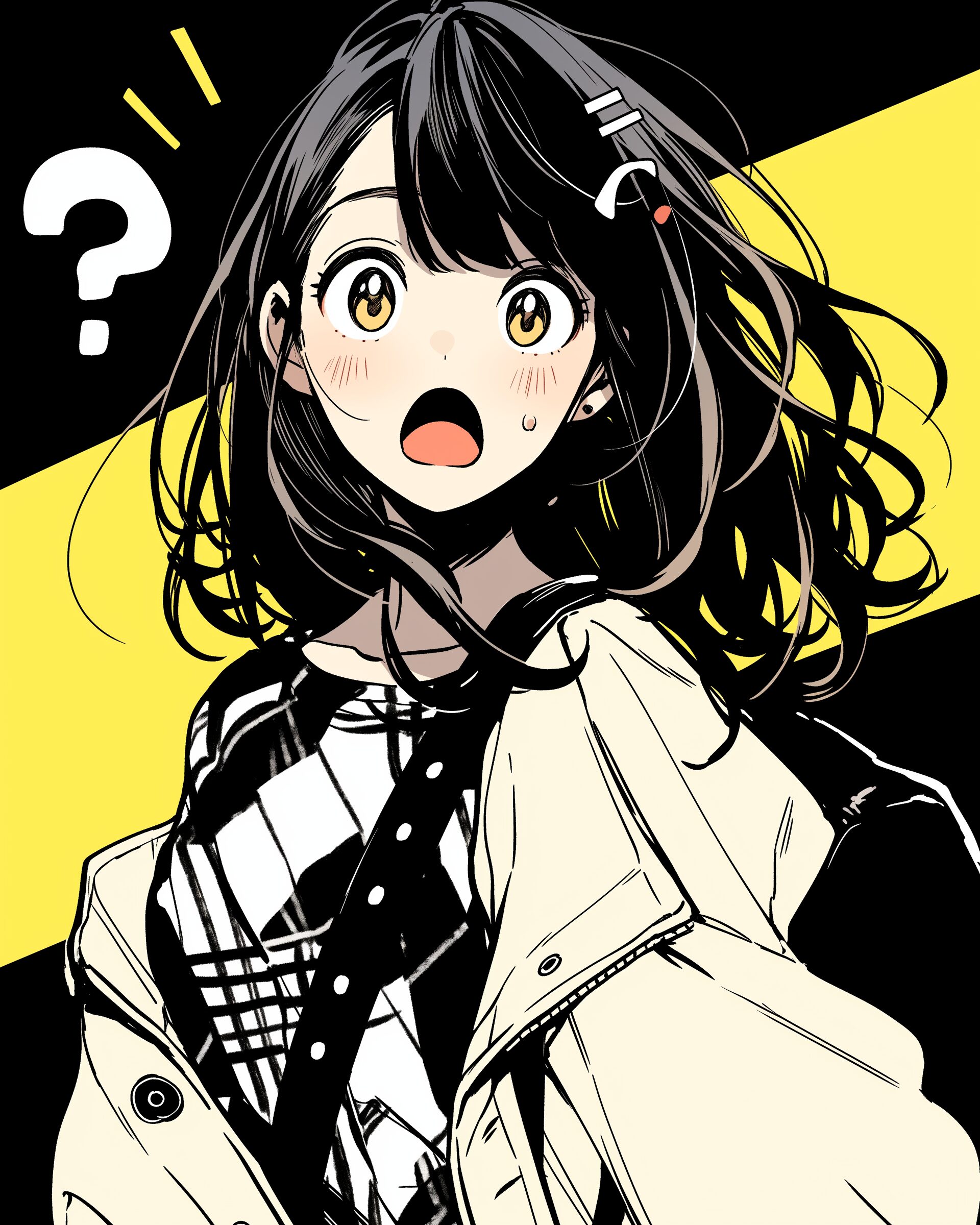 検索タグ:イラスト、ファッション、キャラクター、女性、女、女の子、女子、女の人、アニメ、漫画、マンガ、美人、美女、若い、かわいい、可愛い、カワイイ、人物、顔、美しい、綺麗、きれい、キレイ、アート、お洒落、女子高生、JK、挿絵、夏、春、パステルカラー、トップス、春服、インスタ、Instagram、、黄色、イエロー、yellow、驚く、驚愕、驚き