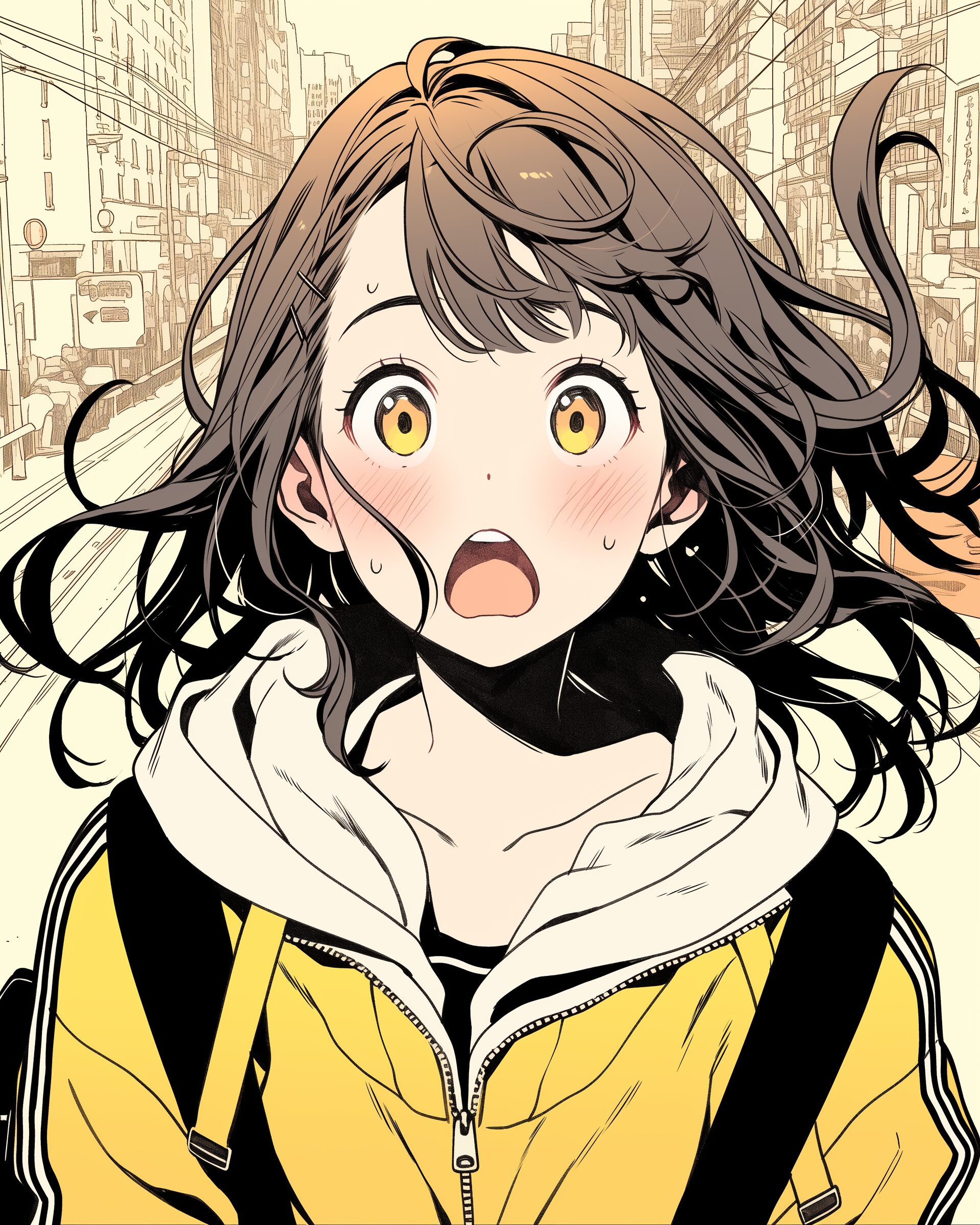 検索タグ:イラスト、ファッション、キャラクター、女性、女、女の子、女子、女の人、アニメ、漫画、マンガ、美人、美女、若い、かわいい、可愛い、カワイイ、人物、顔、美しい、綺麗、きれい、キレイ、アート、お洒落、女子高生、JK、挿絵、夏、春、パステルカラー、トップス、春服、インスタ、Instagram、、黄色、イエロー、yellow、驚く、驚愕、驚き