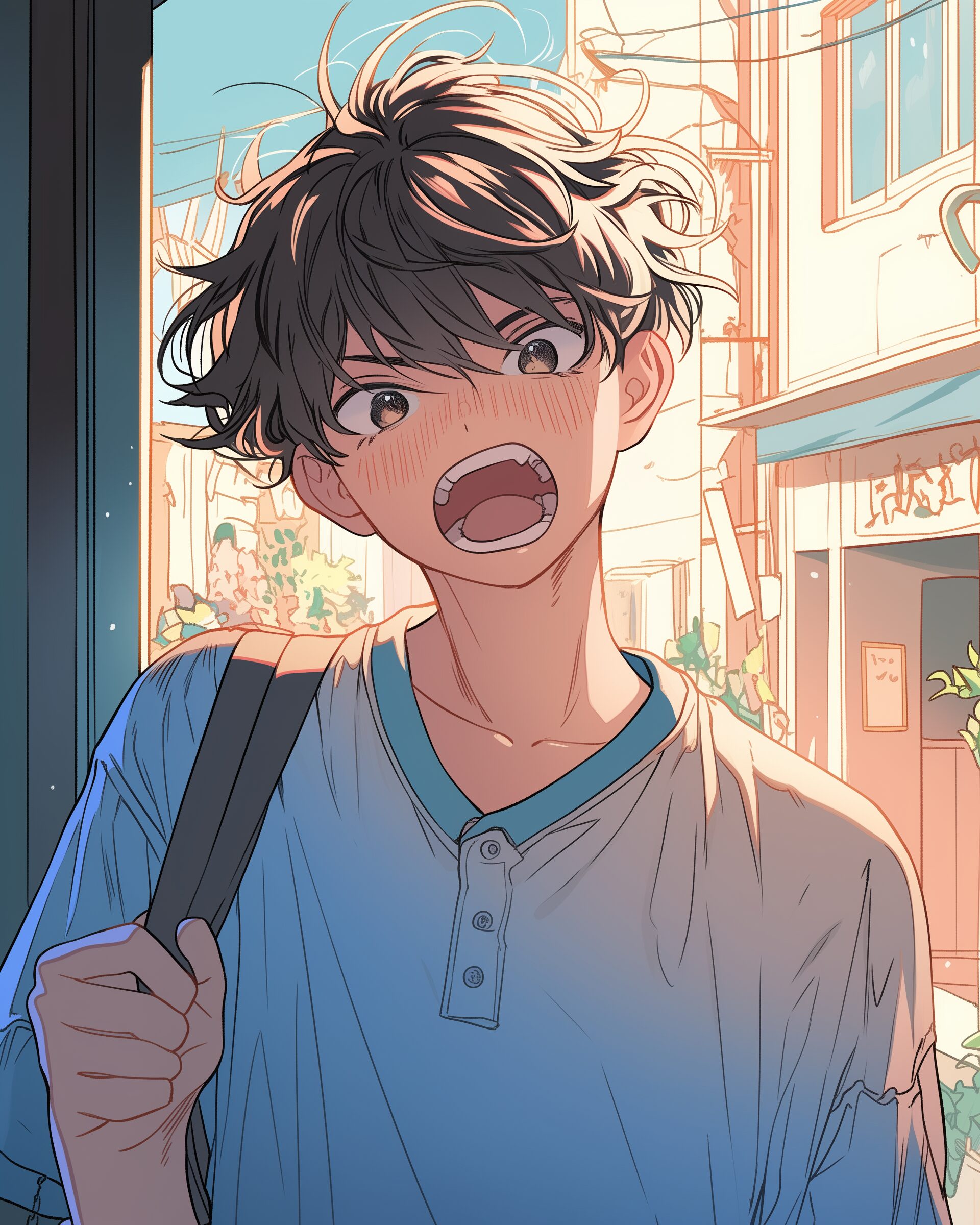 検索タグ:イラスト、ファッション、キャラクター、男性、男子、男の子、アニメ、漫画、マンガ、若い、かわいい、可愛い、カワイイ、人物、顔、美しい、綺麗、きれい、キレイ、アート、お洒落、男子高校生、学生、中学生、挿絵、夏、春、パステルカラー、春服、インスタ、Instagram、夏、夏服、summer、fashion、制服、驚く、驚き、驚愕、衝撃、恥ずかしい、羞恥心