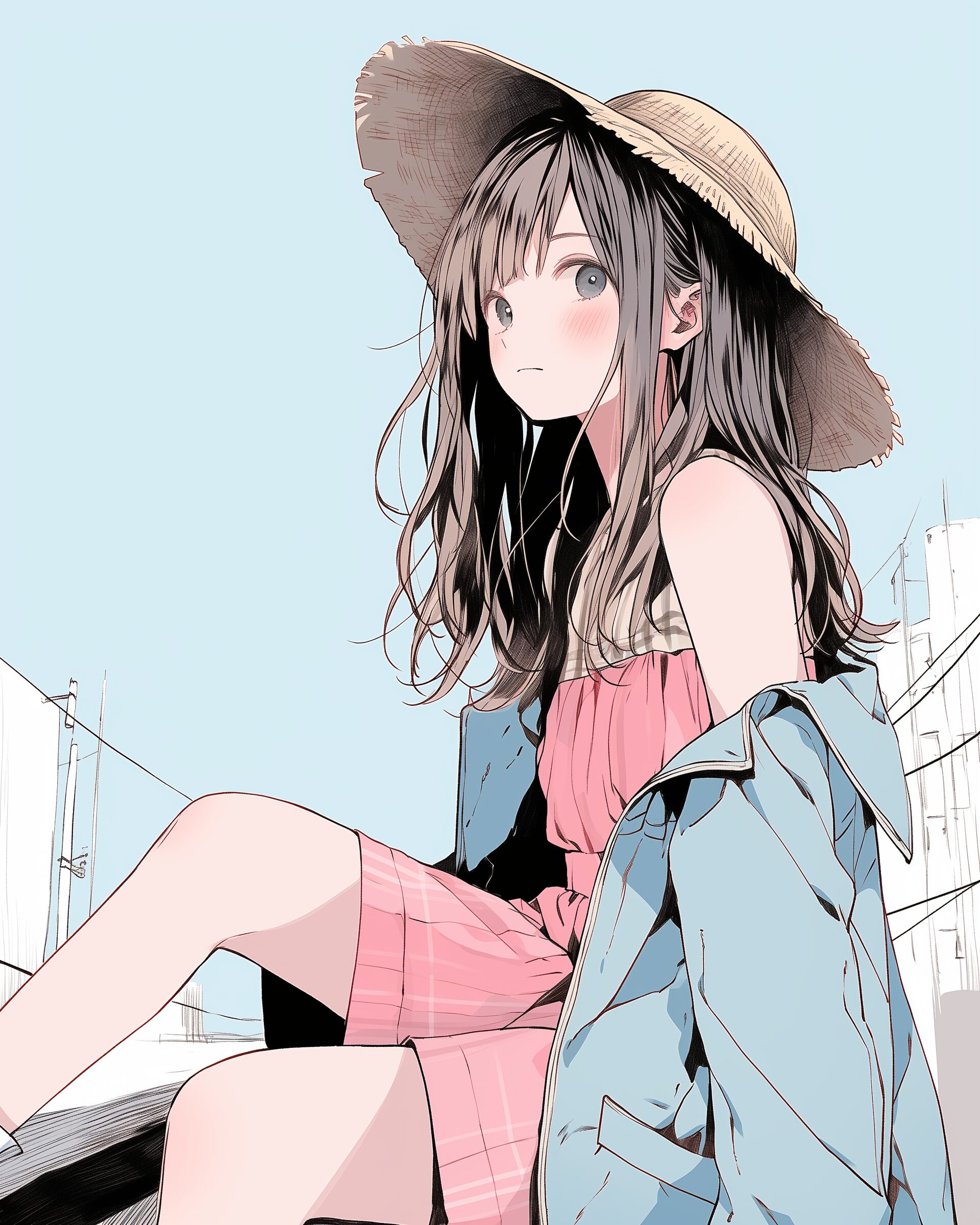 検索タグ:イラスト、ファッション、キャラクター、女性、女、女の子、女子、女の人、アニメ、漫画、マンガ、美人、美女、若い、かわいい、可愛い、カワイイ、人物、顔、美しい、綺麗、きれい、キレイ、アート、お洒落、女子高生、JK、挿絵、夏、春、パステルカラー、春服、インスタ、Instagram、麦わら帽子、夏