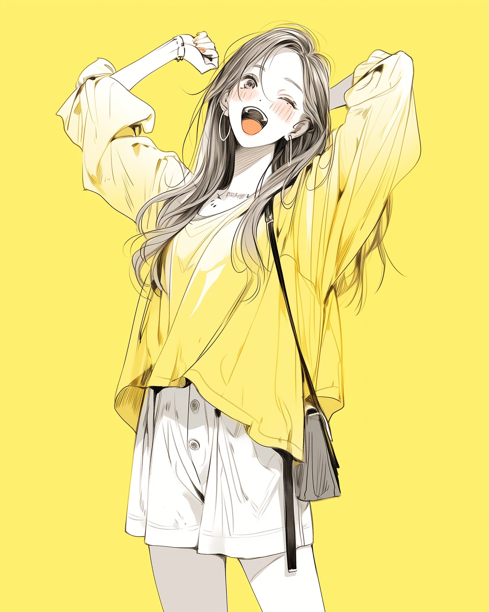 検索タグ:イラスト、ファッション、キャラクター、女性、女、女の子、女子、女の人、アニメ、漫画、マンガ、美人、美女、若い、かわいい、可愛い、カワイイ、人物、顔、美しい、綺麗、きれい、キレイ、アート、お洒落、女子高生、JK、挿絵、夏、春、パステルカラー、春服、インスタ、Instagram、夏、夏服、summer、fashion、黄色、イエロー、yellow