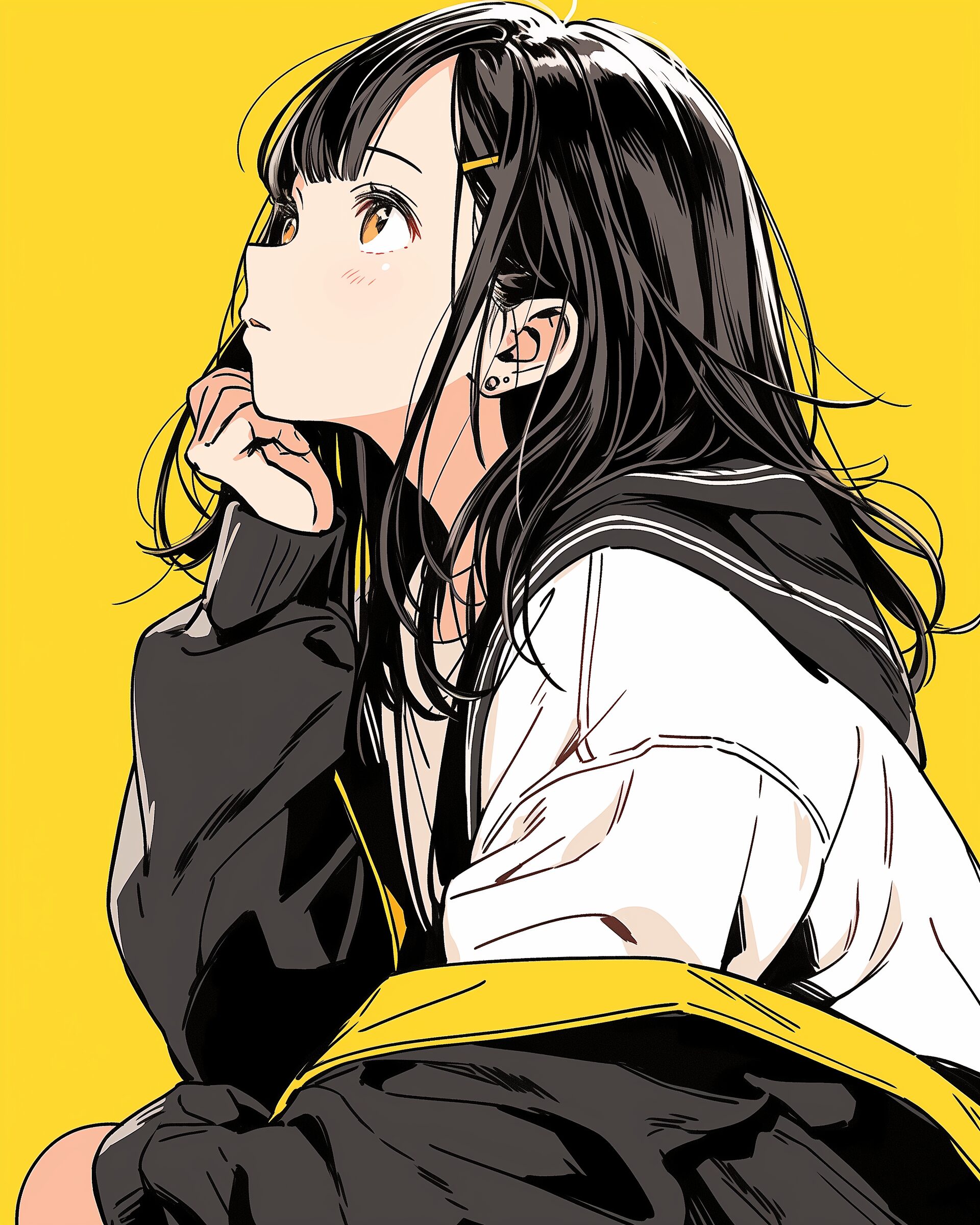 検索タグ:イラスト、ファッション、キャラクター、女性、女、女の子、女子、女の人、アニメ、漫画、マンガ、美人、美女、若い、かわいい、可愛い、カワイイ、人物、顔、美しい、綺麗、きれい、キレイ、アート、お洒落、女子高生、JK、挿絵、夏、春、パステルカラー、春服、インスタ、Instagram、夏、夏服、summer、fashion、黄色、イエロー、yellow、パーカー女子