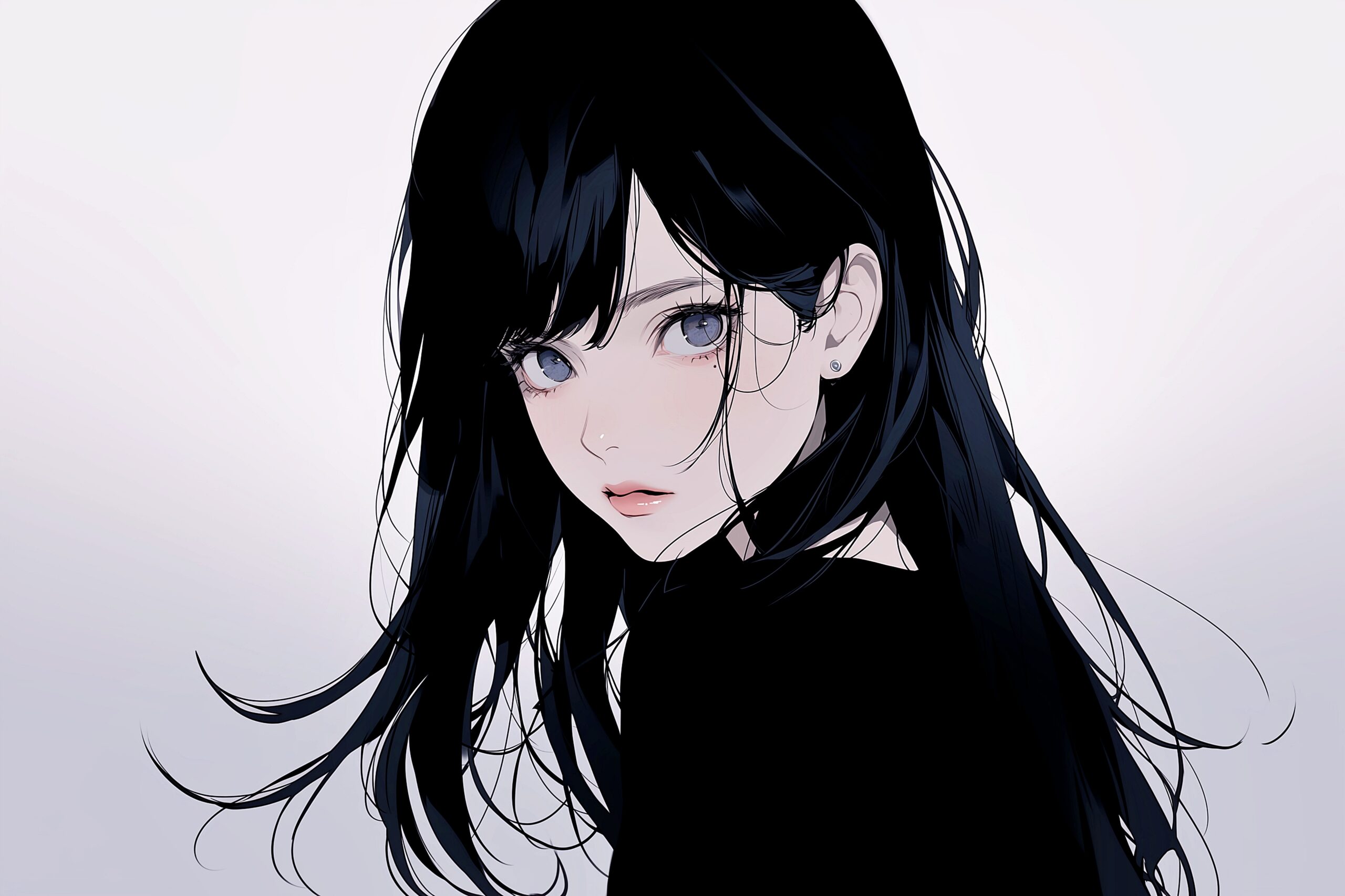 検索タグ:イラスト、キャラクター、女性、女、女の子、女子、女の人、アニメ、漫画、マンガ、美人、美女、若い、かわいい、可愛い、カワイイ、白背景、白バック、萌え、萌え系、萌えキャラ、人物、顔、美しい、綺麗、きれい、キレイ、芸術、アート、顔、黒髪、ロング、ロングヘアー