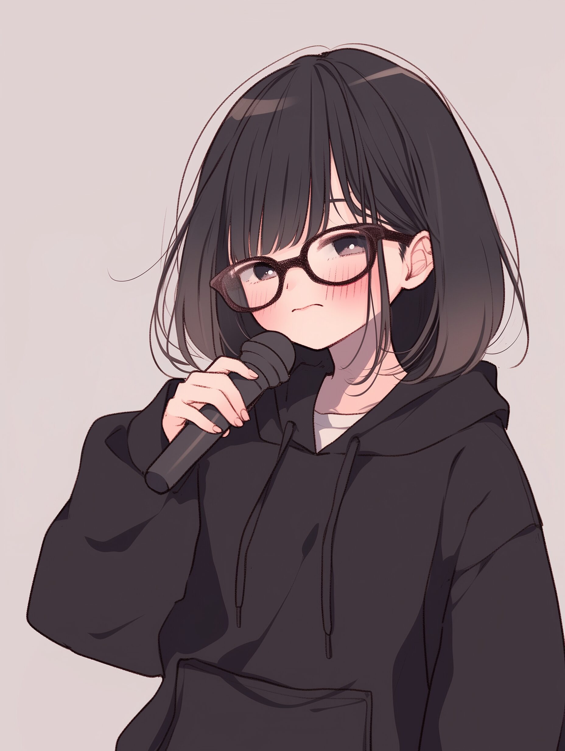 検索タグ:イラスト、キャラクター、女子、女の子、女性、女、女の人、アニメ、漫画、マンガ、若い、人物、顔、美しい、綺麗、きれい、キレイ、アート、お洒落、挿絵、インスタ、Instagram、AI生成画像、コピースペース、かわいい、可愛い、カワイイ、黒髪、橘、たちばな、ゆず、柚、キャラクター、ショートヘア、黒髪、メガネ、眼鏡、めがね、前髪ぱっつん、パッツン、パーカー女子、黒、ブラック、全身、コーディネート、ファッション