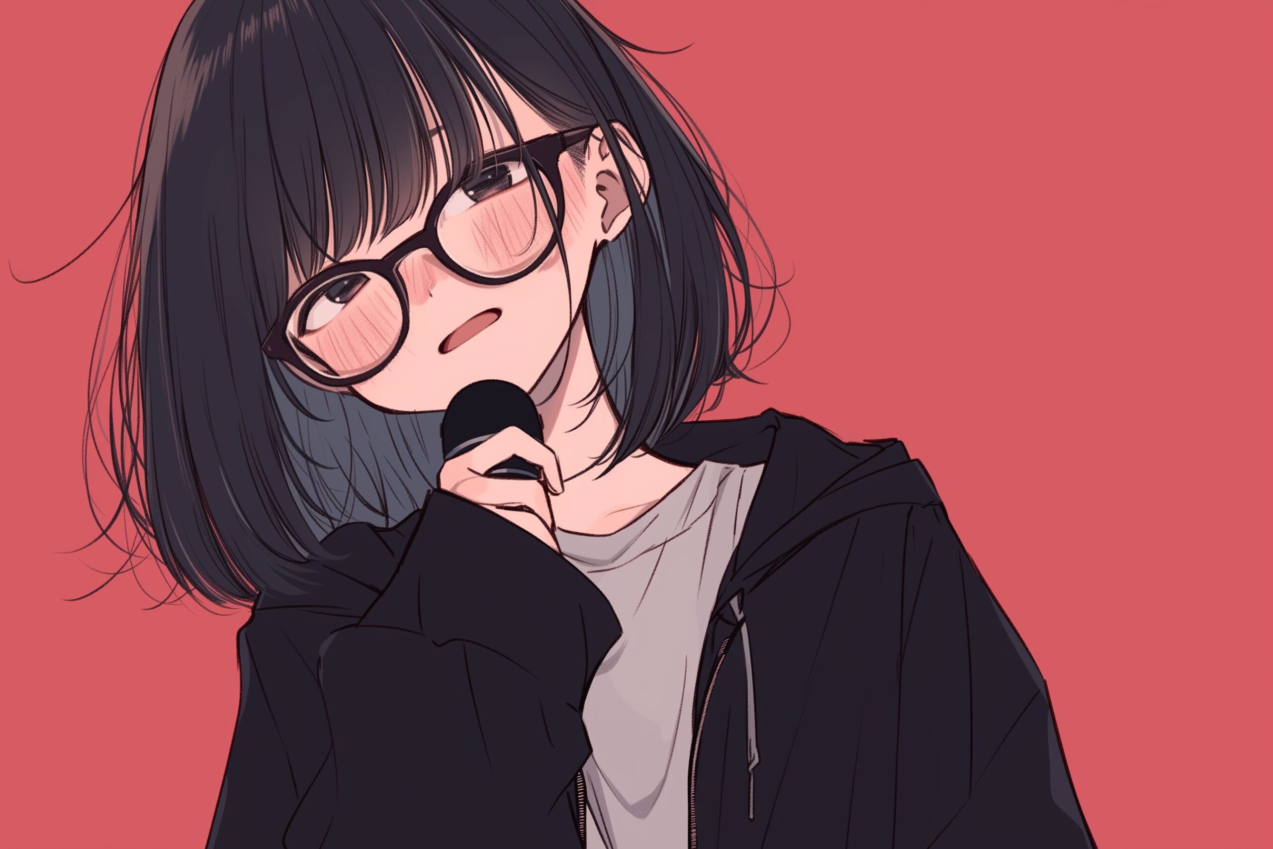検索タグ:イラスト、キャラクター、女子、女の子、女性、女、女の人、アニメ、漫画、マンガ、若い、人物、顔、美しい、綺麗、きれい、キレイ、アート、お洒落、挿絵、インスタ、Instagram、AI生成画像、コピースペース、かわいい、可愛い、カワイイ、黒髪、橘、たちばな、ゆず、柚、キャラクター、ショートヘア、黒髪、メガネ、眼鏡、めがね、前髪ぱっつん、パッツン、パーカー女子、黒、ブラック、全身、コーディネート、ファッション