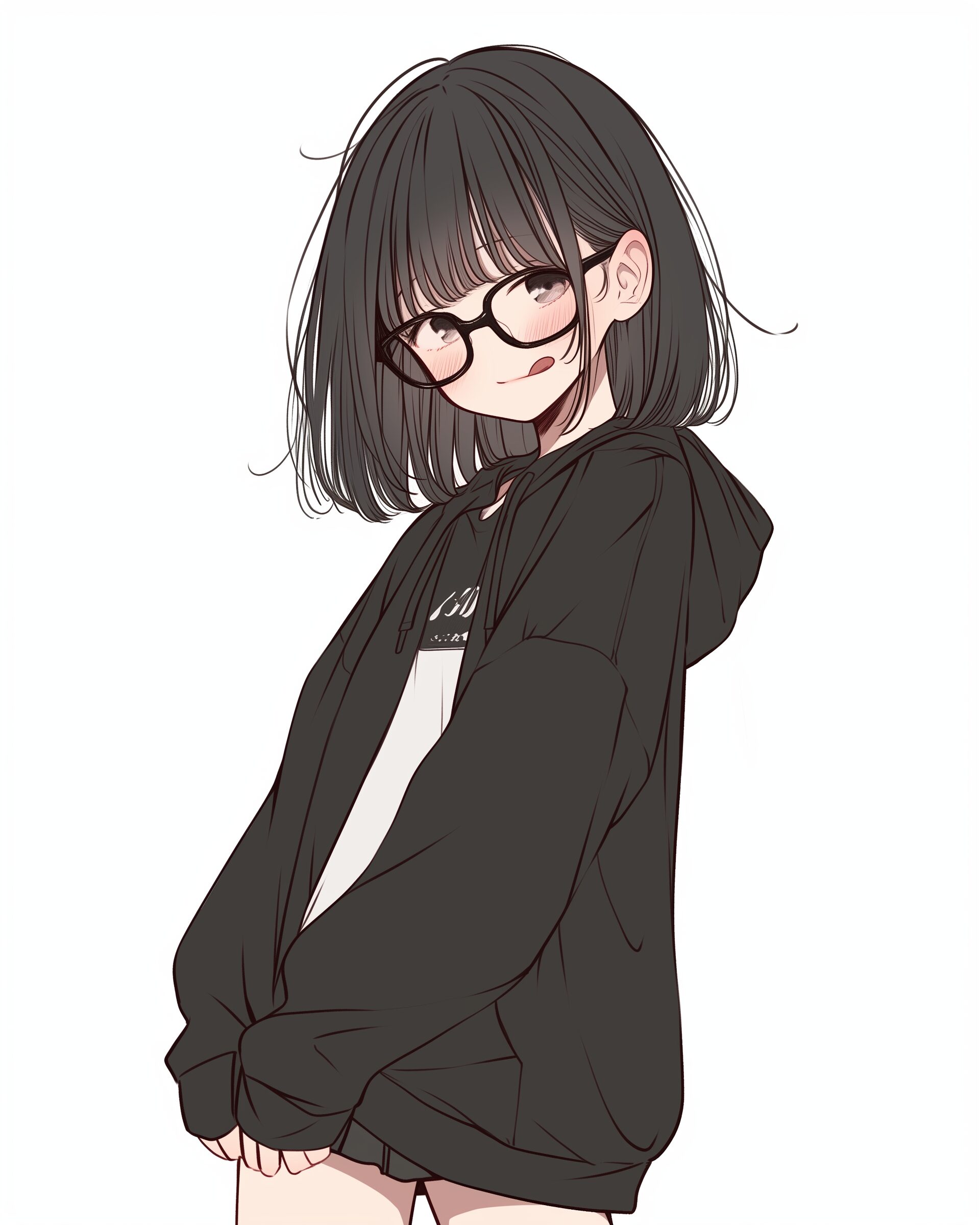 検索タグ:イラスト、キャラクター、女子、女の子、女性、女、女の人、アニメ、漫画、マンガ、若い、人物、顔、美しい、綺麗、きれい、キレイ、アート、お洒落、挿絵、インスタ、Instagram、AI生成画像、コピースペース、かわいい、可愛い、カワイイ、黒髪、橘、たちばな、ゆず、柚、キャラクター、ショートヘア、黒髪、メガネ、眼鏡、めがね、前髪ぱっつん、パッツン、パーカー女子、黒、ブラック、全身、コーディネート、ファッション