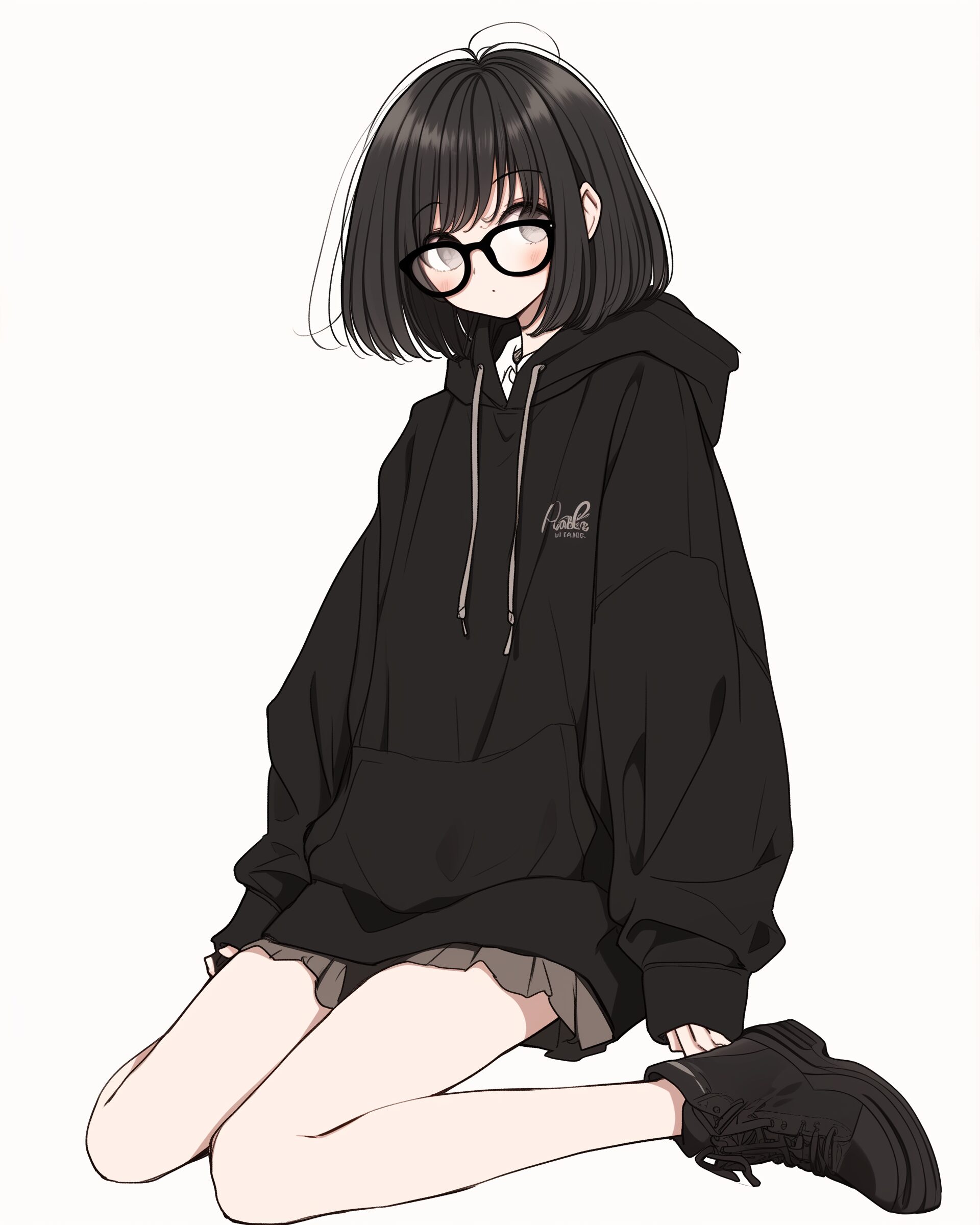 検索タグ:イラスト、キャラクター、女子、女の子、女性、女、女の人、アニメ、漫画、マンガ、若い、人物、顔、美しい、綺麗、きれい、キレイ、アート、お洒落、挿絵、インスタ、Instagram、AI生成画像、コピースペース、かわいい、可愛い、カワイイ、黒髪、橘、たちばな、ゆず、柚、キャラクター、ショートヘア、黒髪、メガネ、眼鏡、めがね、前髪ぱっつん、パッツン、パーカー女子、黒、ブラック、全身、コーディネート、ファッション