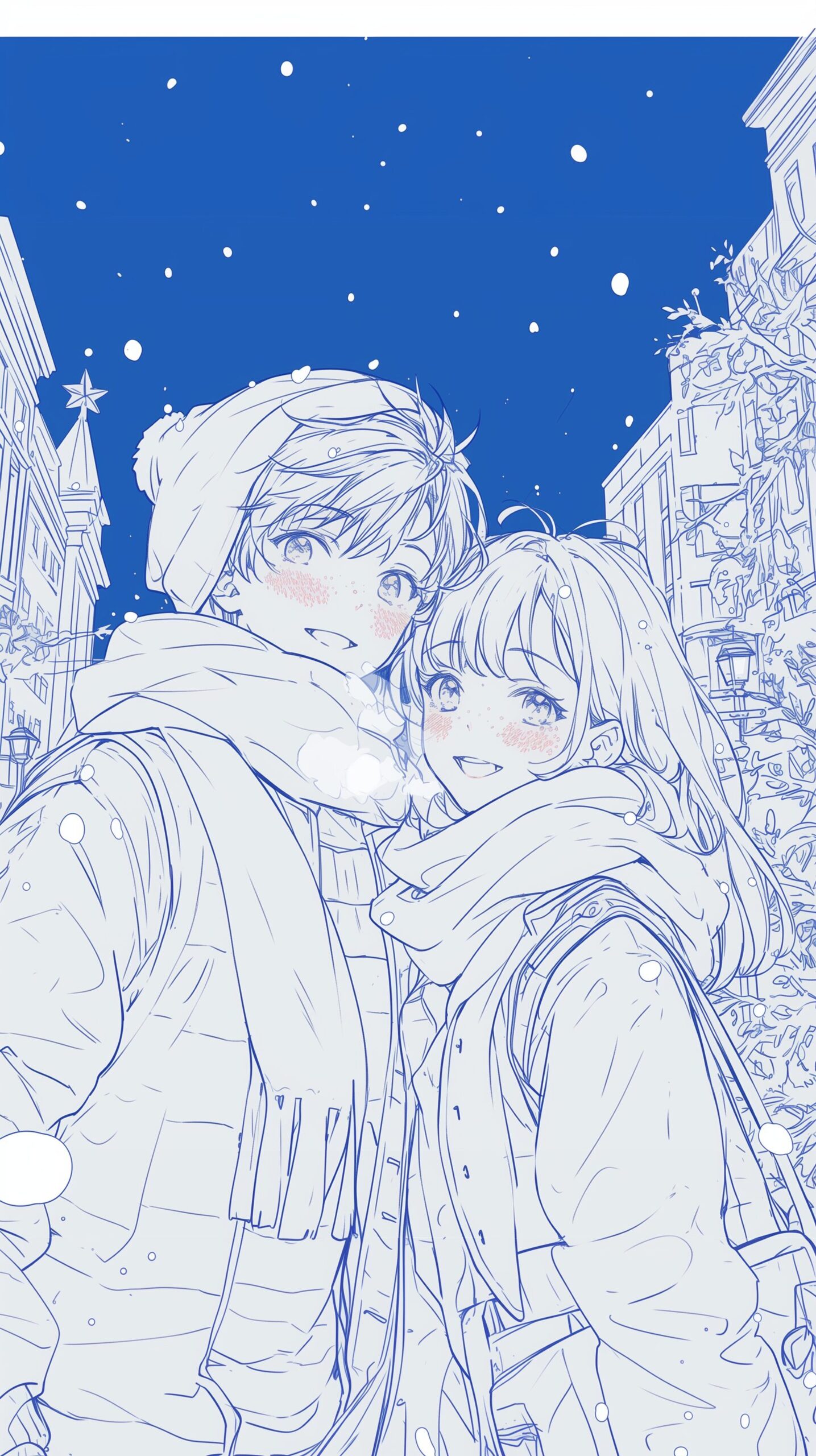 🎄クリスマスカップルのスマホ壁紙イラスト・フリー素材05