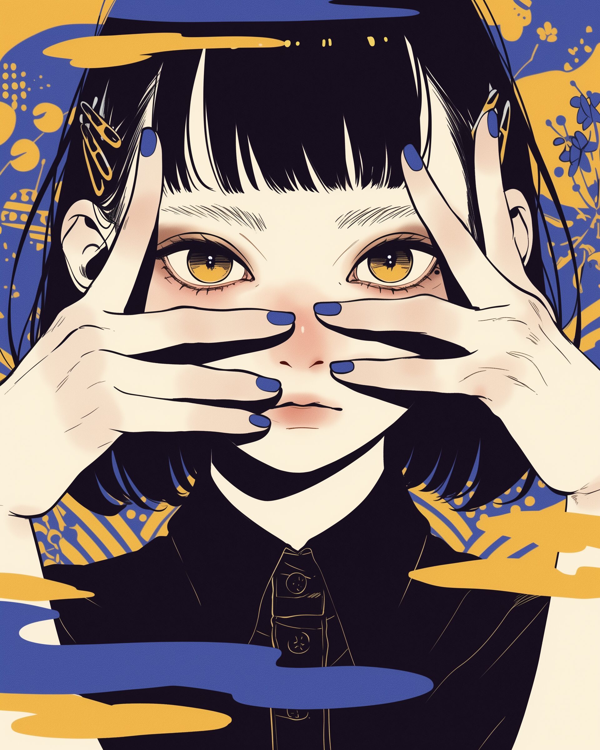 検索タグ:イラスト、ファッション、キャラクター、女性、女、女の子、女子、女の人、アニメ、漫画、マンガ、美人、美女、若い、かわいい、可愛い、カワイイ、人物、顔、美しい、綺麗、きれい、キレイ、アート、お洒落、挿絵、インスタ、Instagram、fashion、コピースペース、おしゃれ、オシャレ、秋、秋服、待ち合わせ、和服、和柄、和装、和、かっこいい、クール、ジャケット、青、ブルー、BLUE