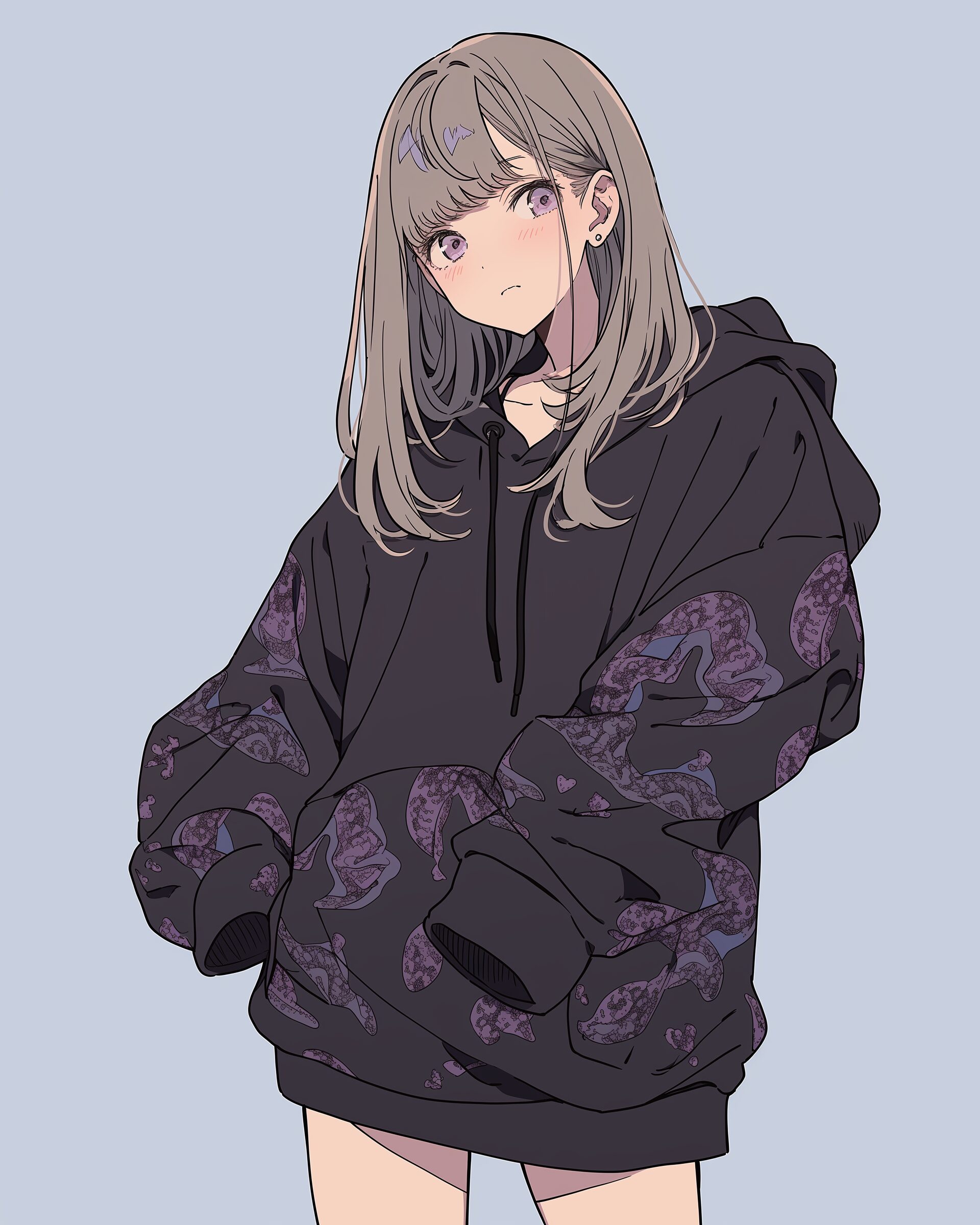 検索タグ:イラスト、ファッション、キャラクター、女性、女、女の子、女子、女の人、アニメ、漫画、マンガ、美人、美女、若い、かわいい、可愛い、カワイイ、人物、顔、美しい、綺麗、きれい、キレイ、アート、お洒落、挿絵、インスタ、Instagram、fashion、コピースペース、おしゃれ、オシャレ、秋、秋服、待ち合わせ、秋冬ファッション、パーカー女子、紫、パープル、purple、ブラック、BLACK、黒