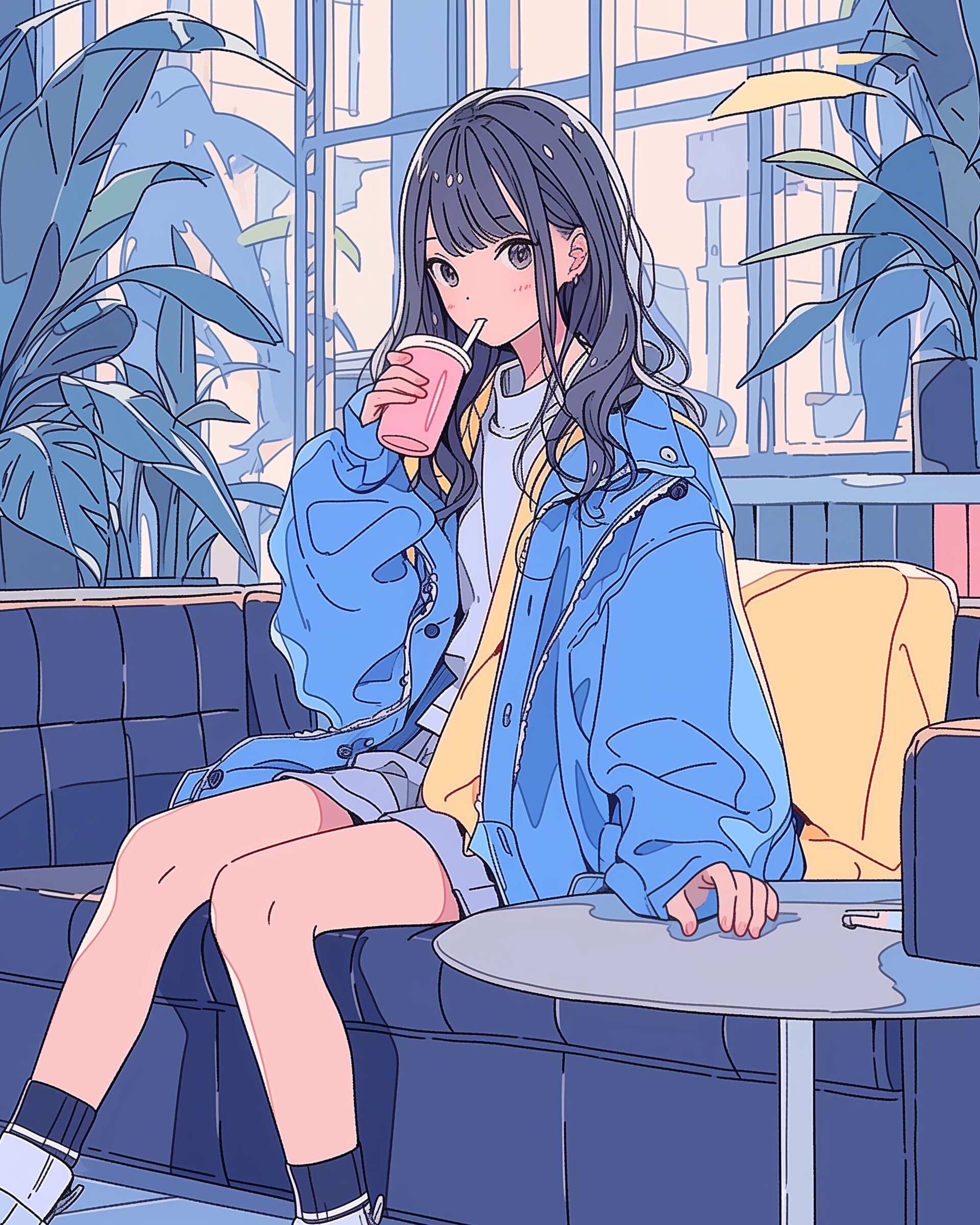 検索タグ:イラスト、ファッション、キャラクター、女性、女、女の子、女子、女の人、アニメ、漫画、マンガ、美人、美女、若い、かわいい、可愛い、カワイイ、人物、顔、美しい、綺麗、きれい、キレイ、アート、お洒落、挿絵、インスタ、Instagram、AI生成画像、fashion、コピースペース、おしゃれ、オシャレ、秋、秋服、パーカー女子、青、ブルー、Blue、都会、全身