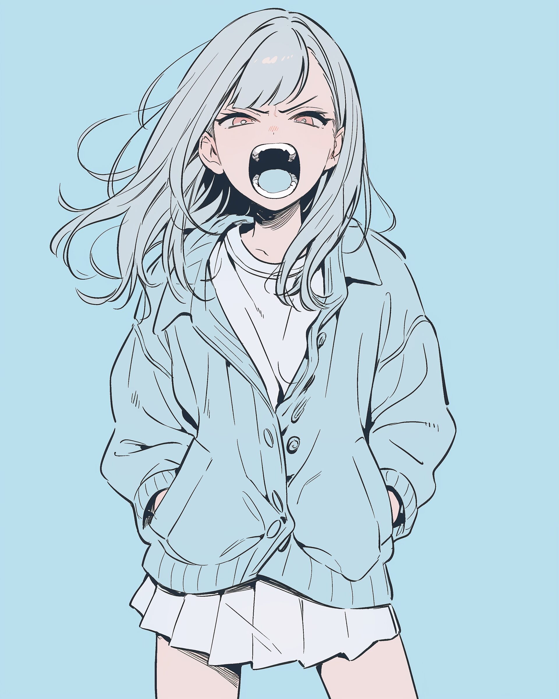 検索タグ:イラスト、ファッション、キャラクター、女性、女、女の子、女子、女の人、アニメ、漫画、マンガ、美人、美女、若い、かわいい、可愛い、カワイイ、人物、顔、美しい、綺麗、きれい、キレイ、アート、お洒落、女子高生、JK、挿絵、夏、春、パステルカラー、春服、インスタ、Instagram、夏、夏服、summer、fashion、青、Blue、ブルー、怒り、怒る
