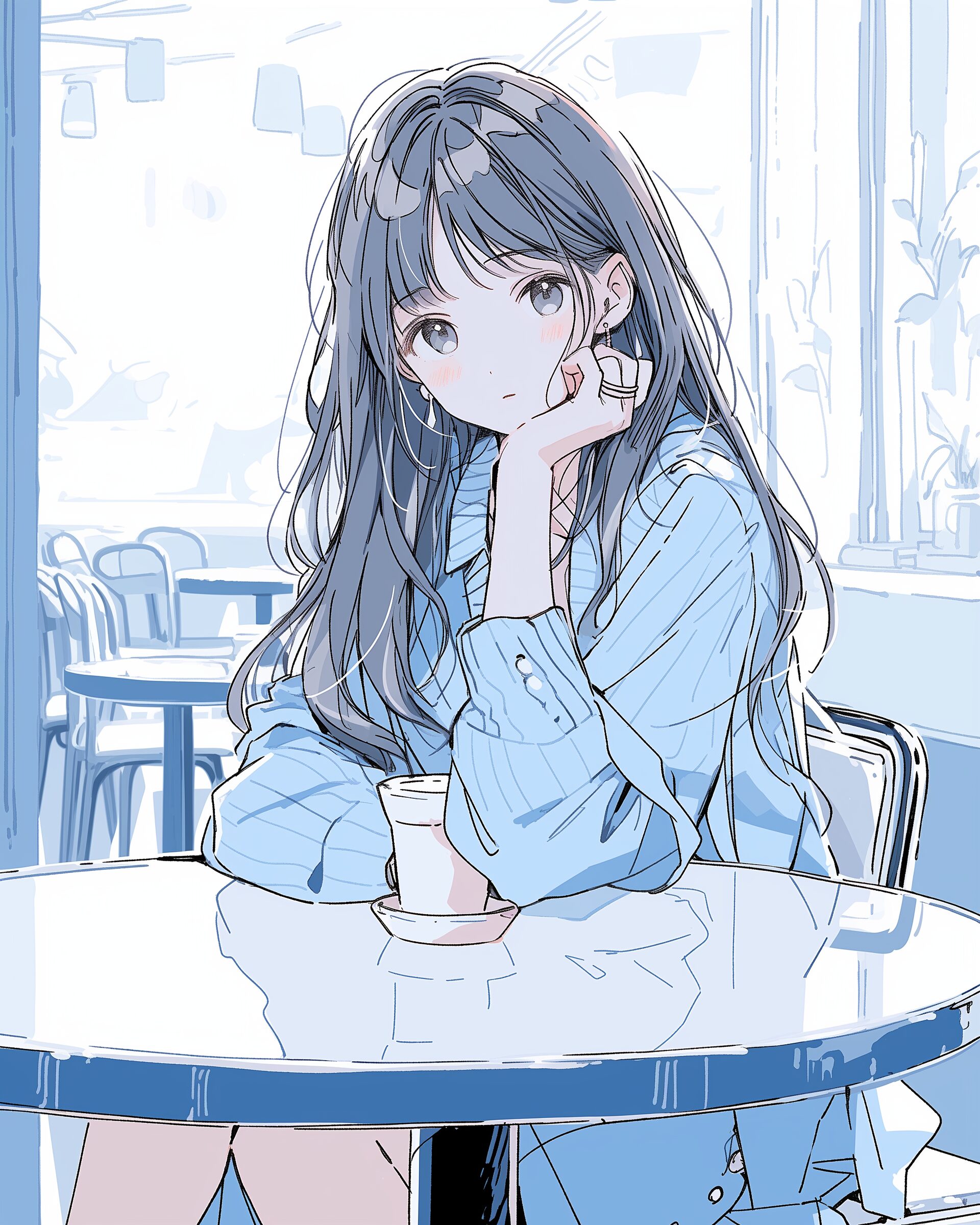 検索タグ:イラスト、ファッション、キャラクター、女性、女、女の子、女子、女の人、アニメ、漫画、マンガ、美人、美女、若い、かわいい、可愛い、カワイイ、人物、顔、美しい、綺麗、きれい、キレイ、アート、お洒落、女子高生、JK、挿絵、夏、春、パステルカラー、トップス、春服、インスタ、Instagram、青、BLUE、ブルー