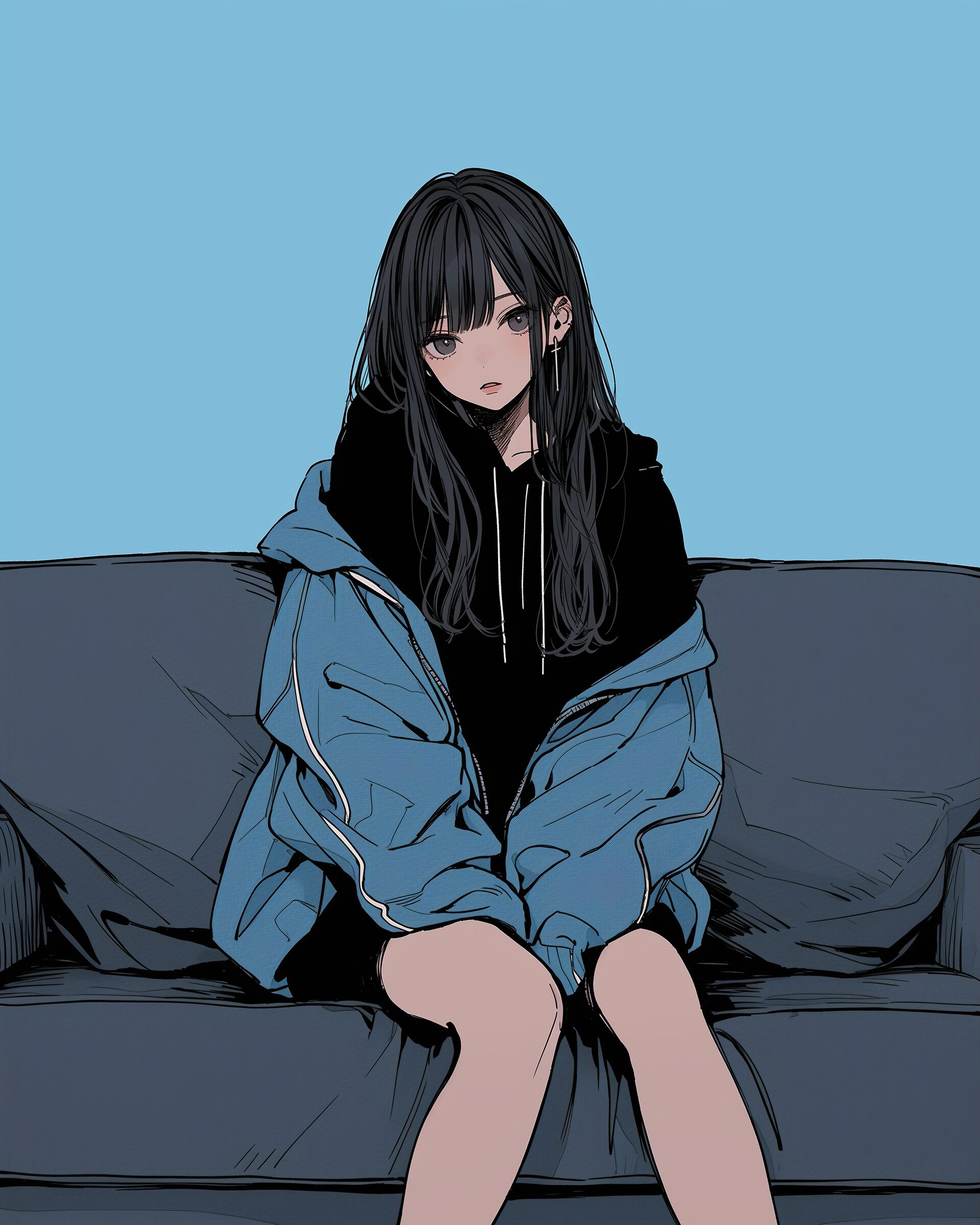 検索タグ:イラスト、ファッション、キャラクター、女性、女、女の子、女子、女の人、アニメ、漫画、マンガ、美人、美女、若い、かわいい、可愛い、カワイイ、人物、顔、美しい、綺麗、きれい、キレイ、アート、お洒落、女子高生、JK、挿絵、夏、春、パステルカラー、パーカー、パーカー女子、hoodie、BLUE、ブルー、青