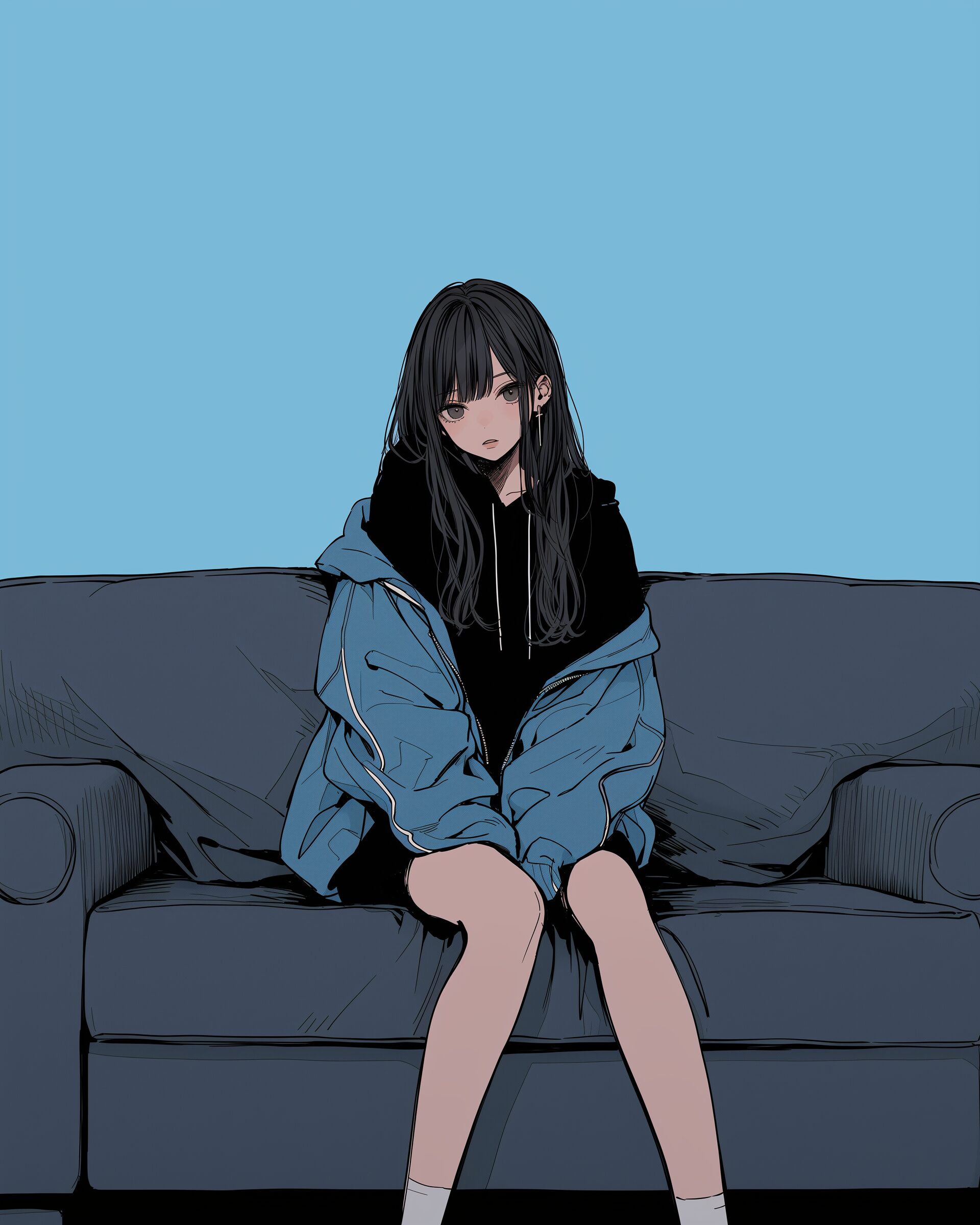 検索タグ:イラスト、ファッション、キャラクター、女性、女、女の子、女子、女の人、アニメ、漫画、マンガ、美人、美女、若い、かわいい、可愛い、カワイイ、人物、顔、美しい、綺麗、きれい、キレイ、アート、お洒落、女子高生、JK、挿絵、夏、春、パステルカラー、パーカー、パーカー女子、hoodie、BLUE、ブルー、青