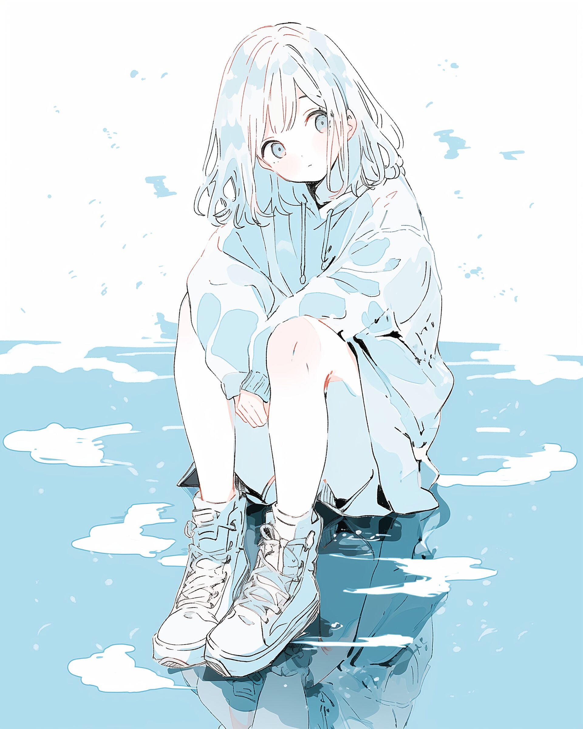 検索タグ:イラスト、ファッション、キャラクター、女性、女、女の子、女子、女の人、アニメ、漫画、マンガ、美人、美女、若い、かわいい、可愛い、カワイイ、人物、顔、美しい、綺麗、きれい、キレイ、アート、お洒落、女子高生、JK、挿絵、夏、春、パステルカラー、春服、インスタ、Instagram、夏、夏服、summer、fashion、青、Blue、ブルー、座る
