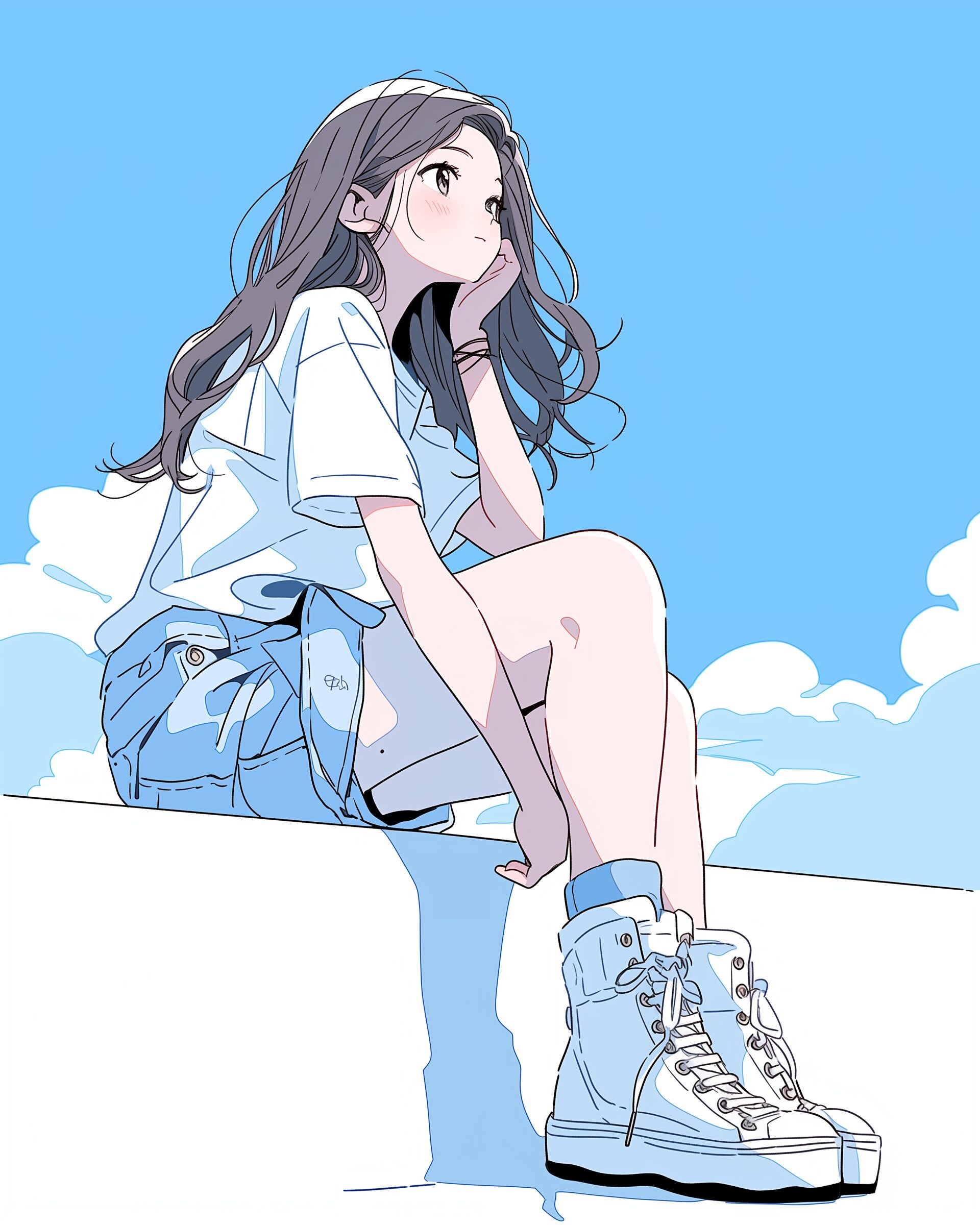 検索タグ:イラスト、ファッション、キャラクター、女性、女、女の子、女子、女の人、アニメ、漫画、マンガ、美人、美女、若い、かわいい、可愛い、カワイイ、人物、顔、美しい、綺麗、きれい、キレイ、アート、お洒落、女子高生、JK、挿絵、夏、春、パステルカラー、春服、インスタ、Instagram、夏、夏服、summer、fashion、青、Blue、ブルー、座る