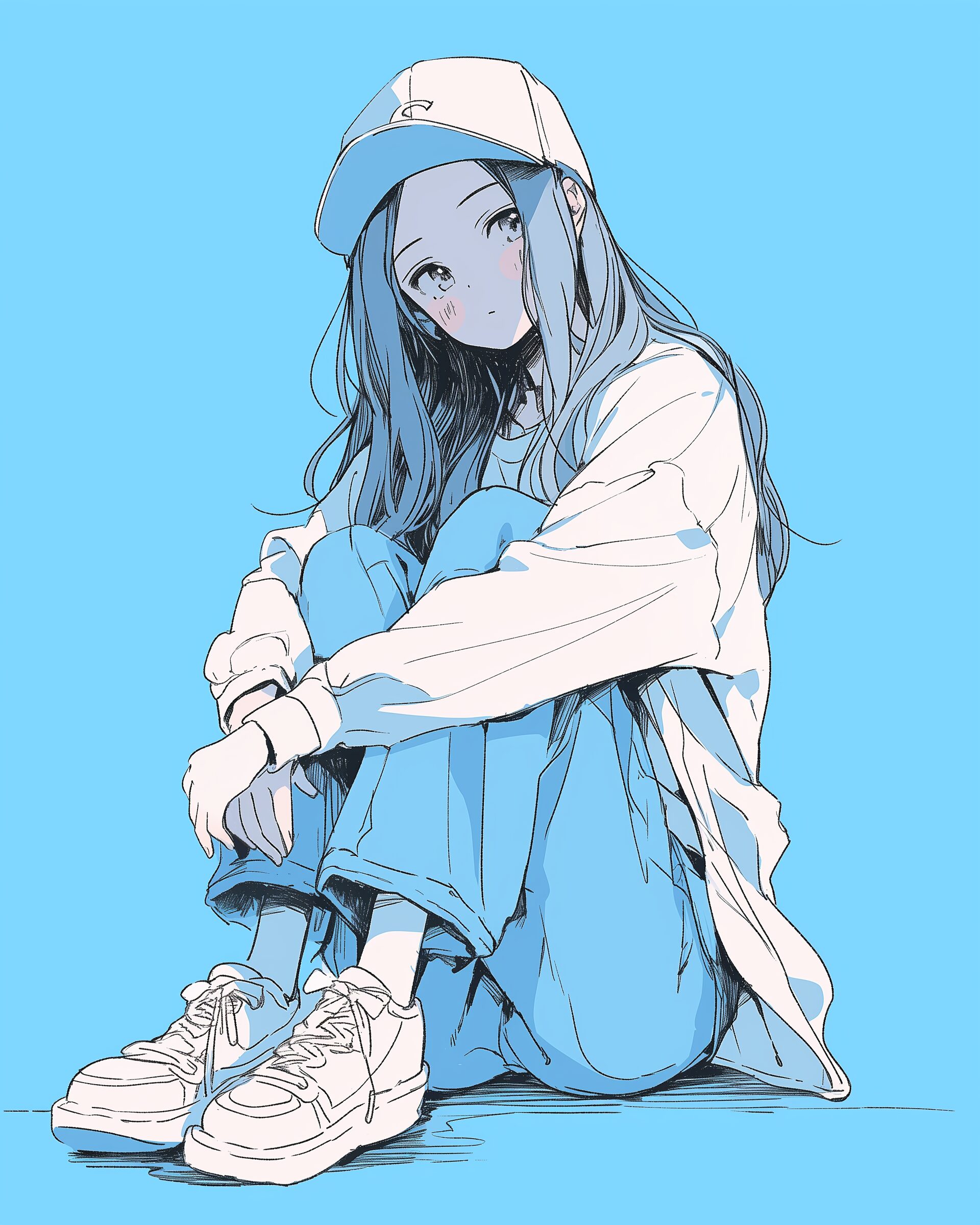 検索タグ:イラスト、ファッション、キャラクター、女性、女、女の子、女子、女の人、アニメ、漫画、マンガ、美人、美女、若い、かわいい、可愛い、カワイイ、人物、顔、美しい、綺麗、きれい、キレイ、アート、お洒落、女子高生、JK、挿絵、夏、春、パステルカラー、春服、インスタ、Instagram、夏、夏服、summer、fashion、青、Blue、ブルー、座る
