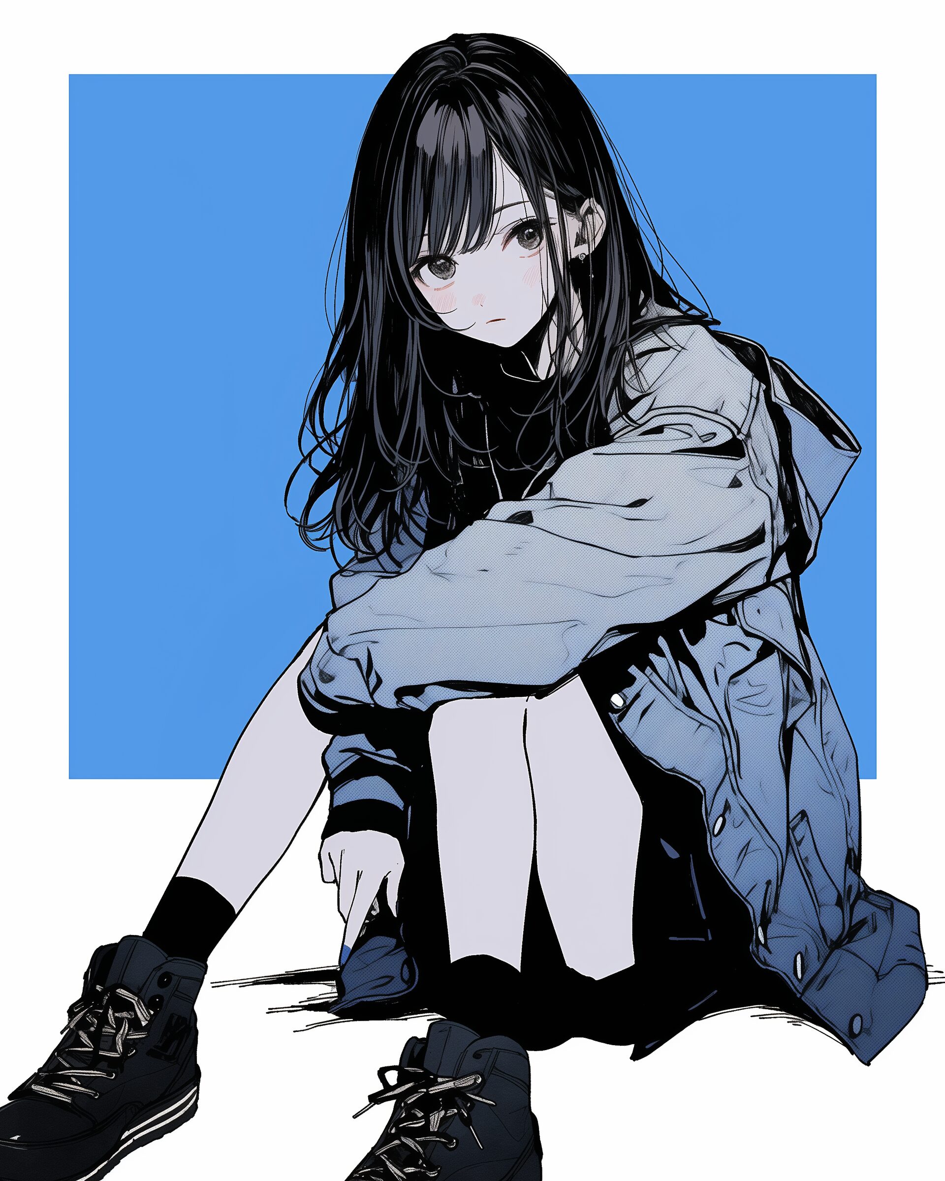 検索タグ:イラスト、ファッション、キャラクター、女性、女、女の子、女子、女の人、アニメ、漫画、マンガ、美人、美女、若い、かわいい、可愛い、カワイイ、人物、顔、美しい、綺麗、きれい、キレイ、アート、お洒落、女子高生、JK、挿絵、夏、春、パステルカラー、トップス、春服、BLUE、ブルー、青