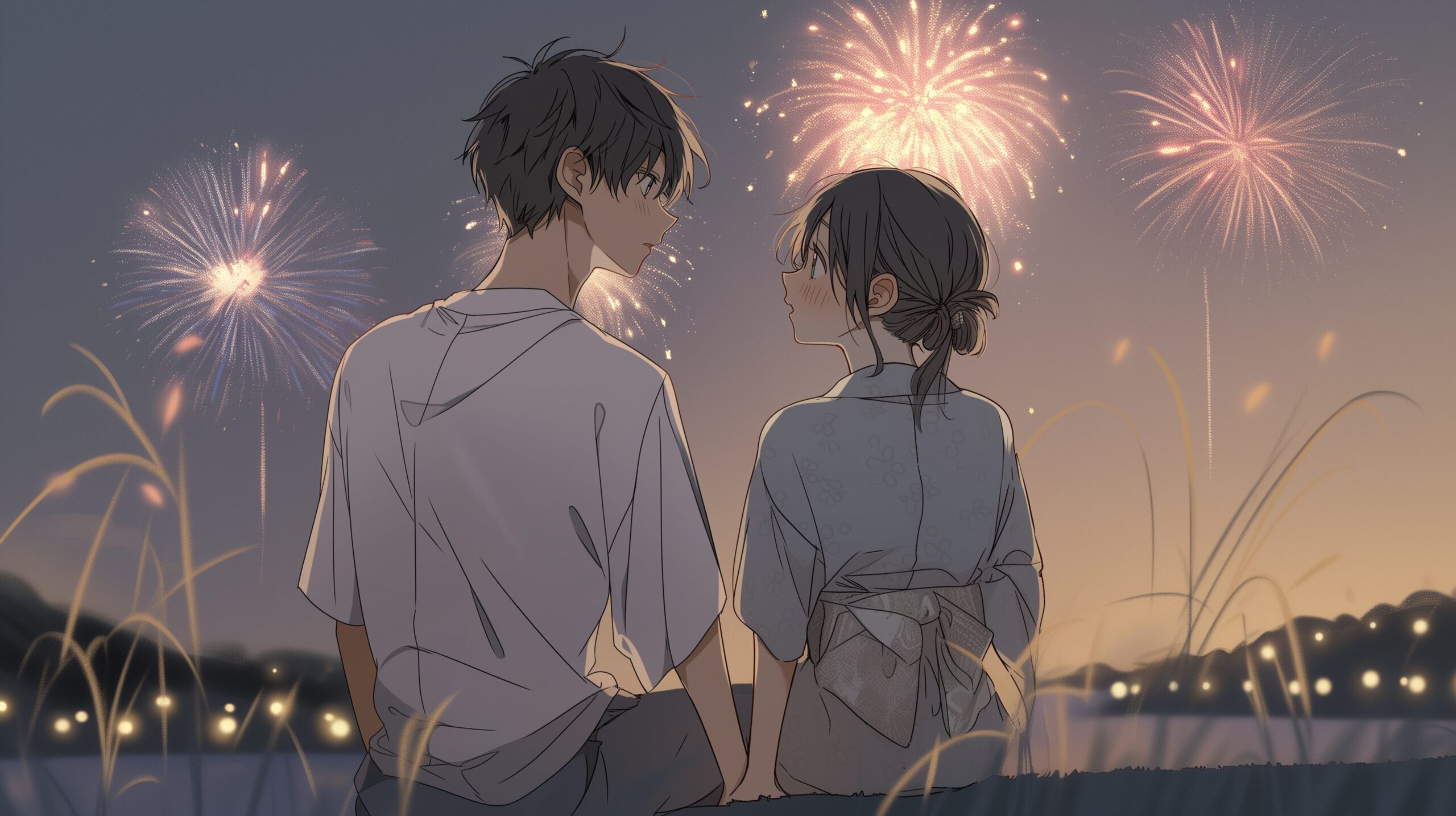 検索タグ:イラスト、ファッション、キャラクター、女性、女、女の子、女子、女の人、アニメ、漫画、マンガ、美人、美女、若い、かわいい、可愛い、カワイイ、人物、顔、美しい、綺麗、きれい、キレイ、アート、お洒落、挿絵、インスタ、Instagram、AI生成画像、fashion、コピースペース、カップル、恋人、男性、男、男の人、恋愛、恋、エモい、笑顔、サマー、楽しい、楽しむ、青春、花火、花火大会、風物詩、夏、見つめ合う、ペア画、後ろ姿