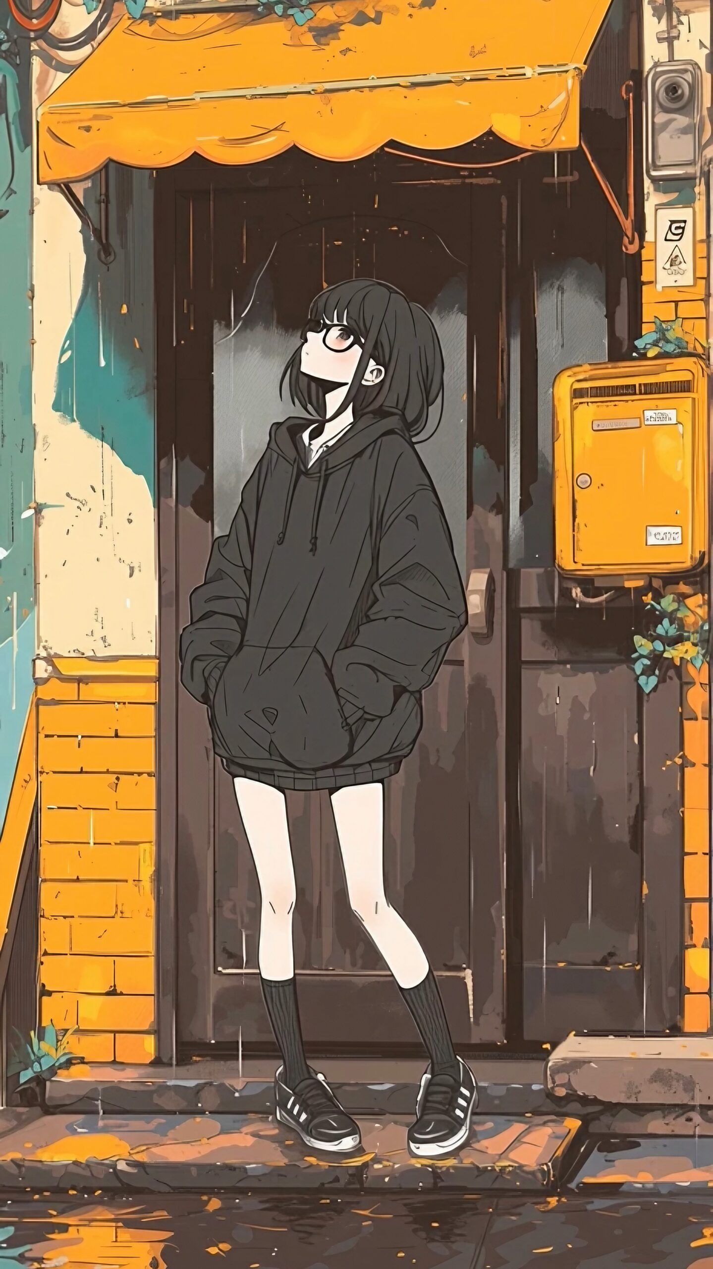 検索タグ:イラスト、ファッション、キャラクター、アニメ、漫画、マンガ、若い、人物、顔、美しい、綺麗、きれい、キレイ、アート、お洒落、挿絵、AI生成画像、インスタ、Instagram、summer、fashion、サムネイル、アイキャッチ、コピースペース、壁紙、ロック画面、待ち受け画像、wallpaper、ロック画面、女性、女子高生、JK、かわいい、可愛い、カワイイ、女、女の人、黒髪、黒、橘 柚、たちばな ゆず、Tachibana Yuzu、ブラック、眼鏡女子、めがね、メガネ、ボブヘア、ショートヘア、パーカー女子、黒、ブラック、BLACK、雨、雨天、rain、rainy、雨宿り
