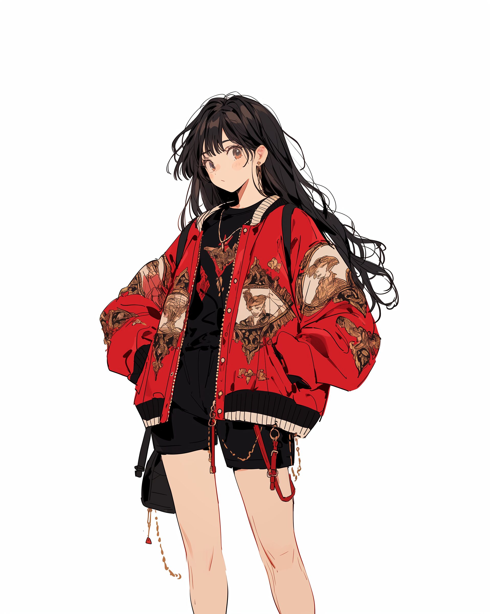 検索タグ:イラスト、ファッション、キャラクター、女性、女、女の子、女子、女の人、アニメ、漫画、マンガ、美人、美女、若い、かわいい、可愛い、カワイイ、人物、顔、美しい、綺麗、きれい、キレイ、アート、お洒落、挿絵、インスタ、Instagram、fashion、コピースペース、おしゃれ、オシャレ、秋、秋服、待ち合わせ、和服、和柄、和装、和、かっこいい、クール、ジャケット、秋冬ファッション、冬服、レッド、RED、赤、黒髪