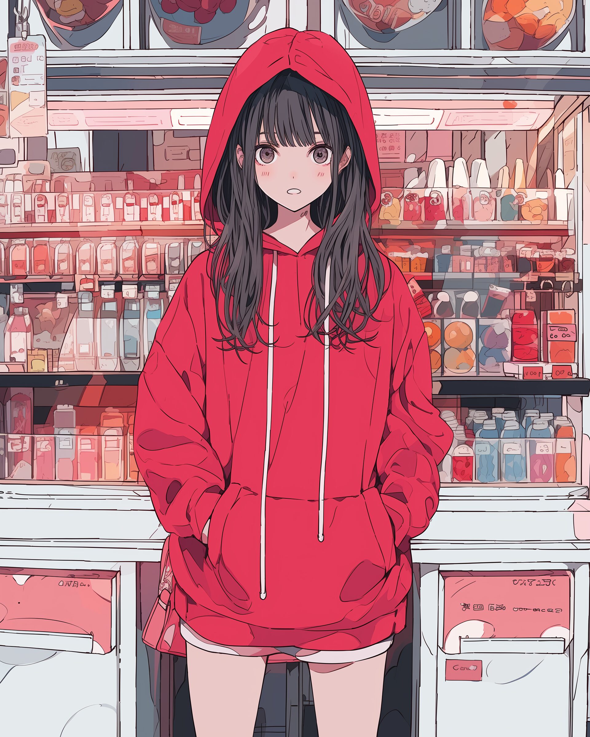 検索タグ:イラスト、ファッション、キャラクター、女性、女、女の子、女子、女の人、アニメ、漫画、マンガ、美人、美女、若い、かわいい、可愛い、カワイイ、人物、顔、美しい、綺麗、きれい、キレイ、アート、お洒落、女子高生、JK、挿絵、夏、春、パステルカラー、春服、インスタ、Instagram、fashion、サムネイル、アイキャッチ、コピースペース、RED、レッド、赤色、パーカー女子