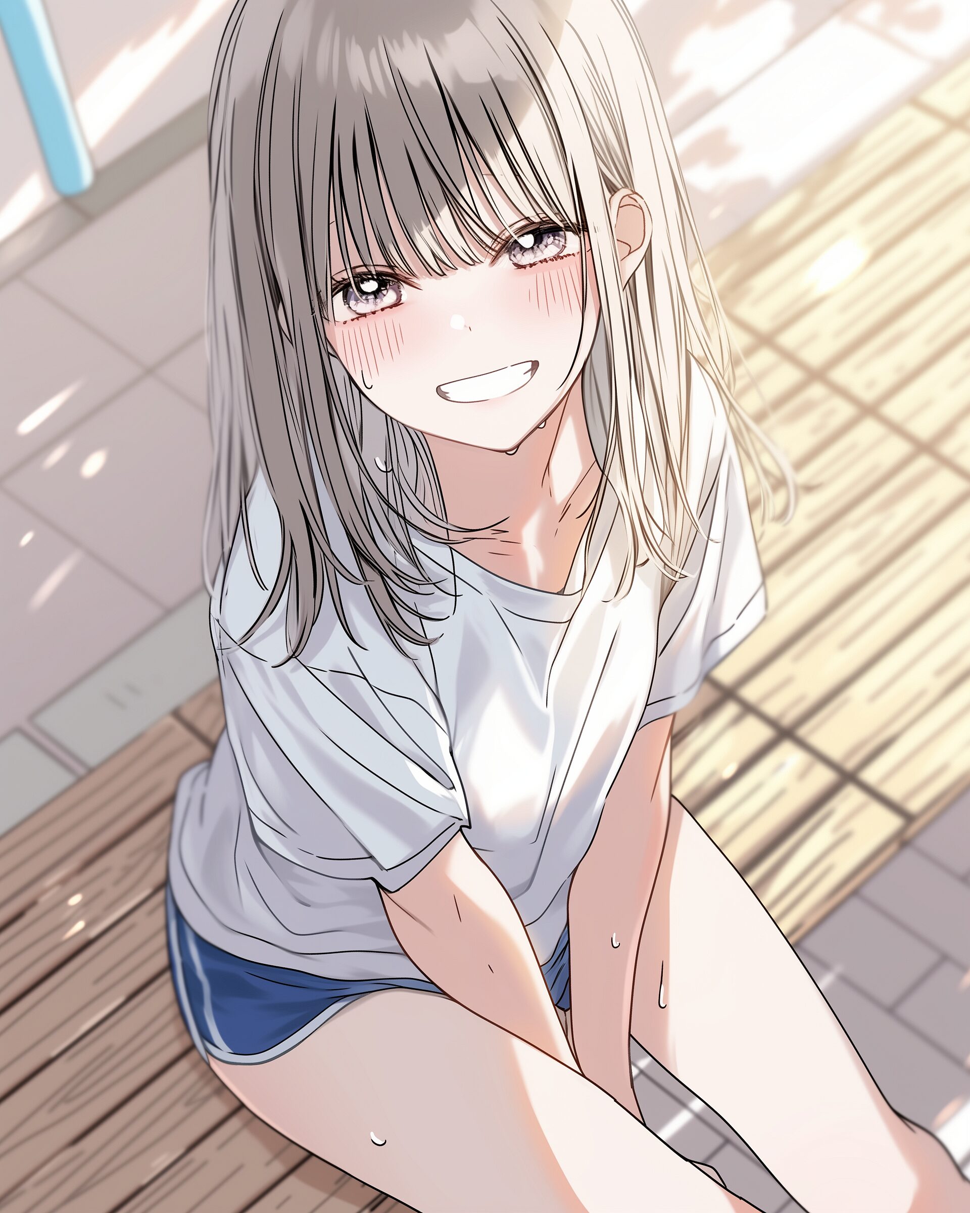 検索タグ:イラスト、ファッション、キャラクター、アニメ、漫画、マンガ、若い、人物、顔、美しい、綺麗、きれい、キレイ、アート、お洒落、挿絵、AI生成画像、インスタ、Instagram、summer、fashion、サムネイル、フリー素材、フリー画像、無料、アイキャッチ、コピースペース、女性、女子高生、JK、かわいい、可愛い、カワイイ、女、女の人、夏、サマー、笑顔、スマイル、cute girl illustration、体操服、体育、休憩、暑い、熱中症、銀髪、シルバーヘア、運動、爽やか、さわやか、クール、スポーツ
