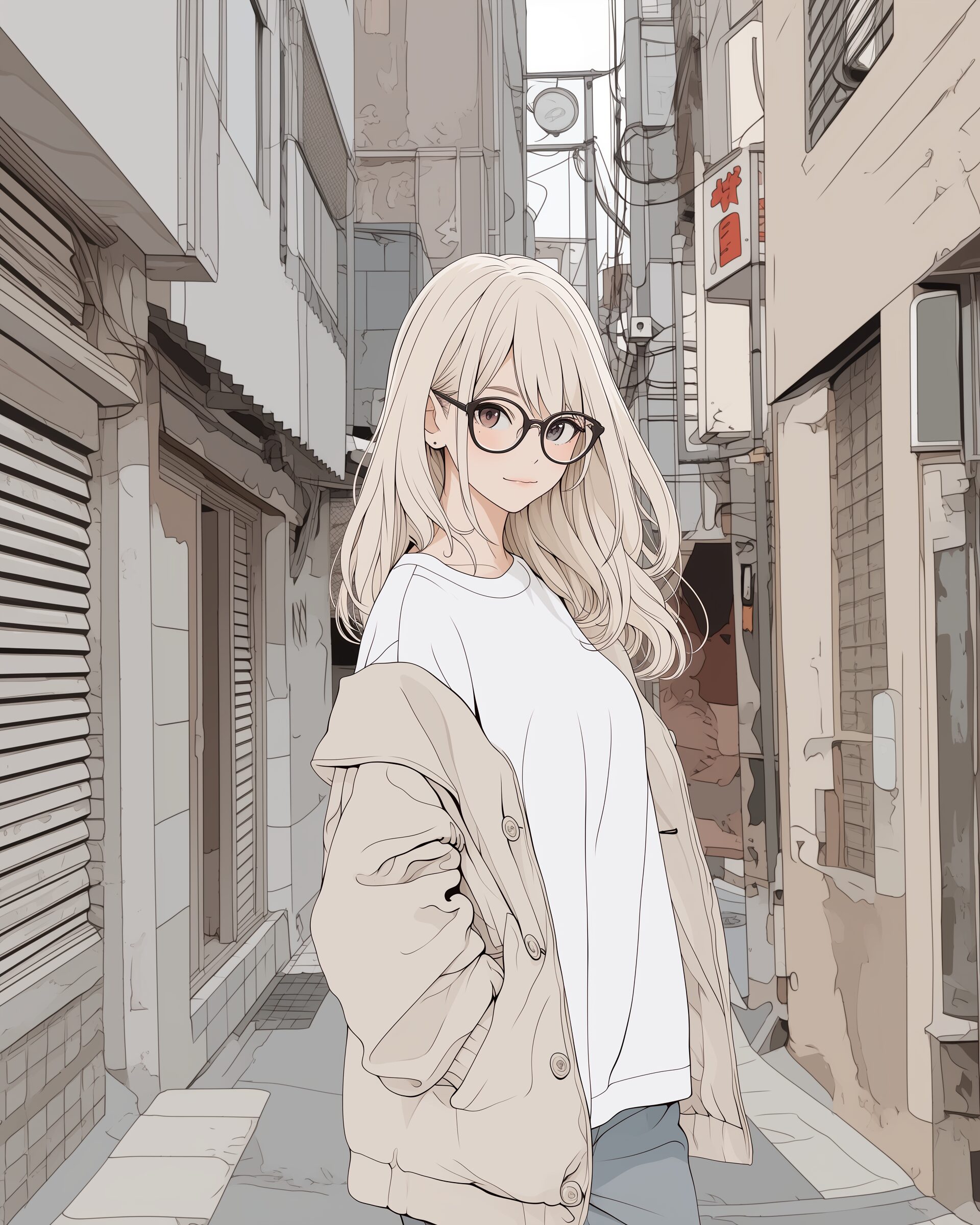 検索タグ:イラスト、ファッション、キャラクター、女性、女、女の子、女子、女の人、アニメ、漫画、マンガ、美人、美女、若い、かわいい、可愛い、カワイイ、人物、顔、美しい、綺麗、きれい、キレイ、アート、お洒落、女子高生、JK、挿絵、夏、春、パステルカラー、春服、インスタ、Instagram、夏、夏服、summer、fashion、ベージュ、beige、メガネ、眼鏡、めがね、メガネ女子、Tシャツ、
