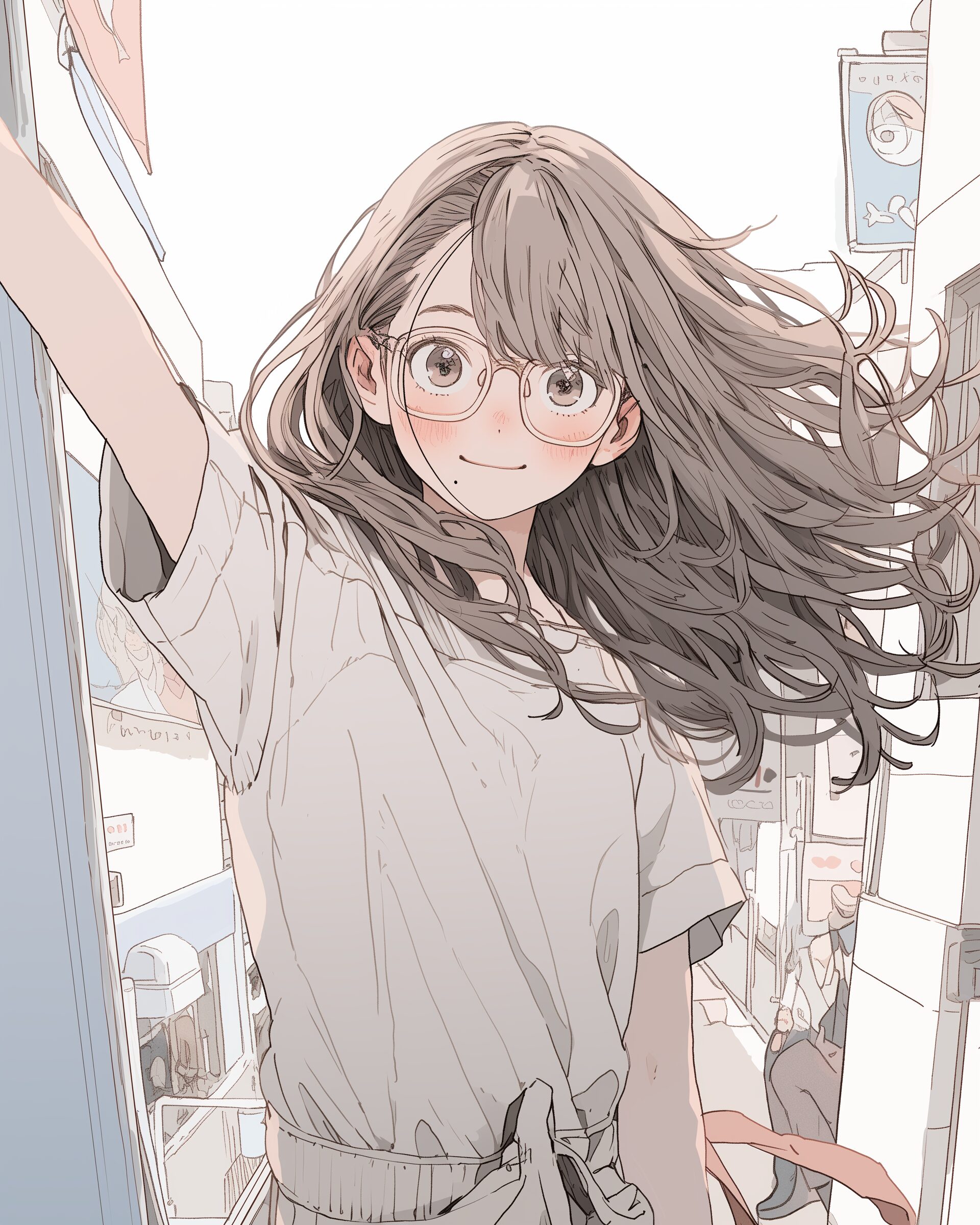 検索タグ:イラスト、ファッション、キャラクター、女性、女、女の子、女子、女の人、アニメ、漫画、マンガ、美人、美女、若い、かわいい、可愛い、カワイイ、人物、顔、美しい、綺麗、きれい、キレイ、アート、お洒落、女子高生、JK、挿絵、夏、春、パステルカラー、春服、インスタ、Instagram、夏、夏服、summer、fashion、ベージュ、beige、メガネ、眼鏡、めがね、メガネ女子、Tシャツ、