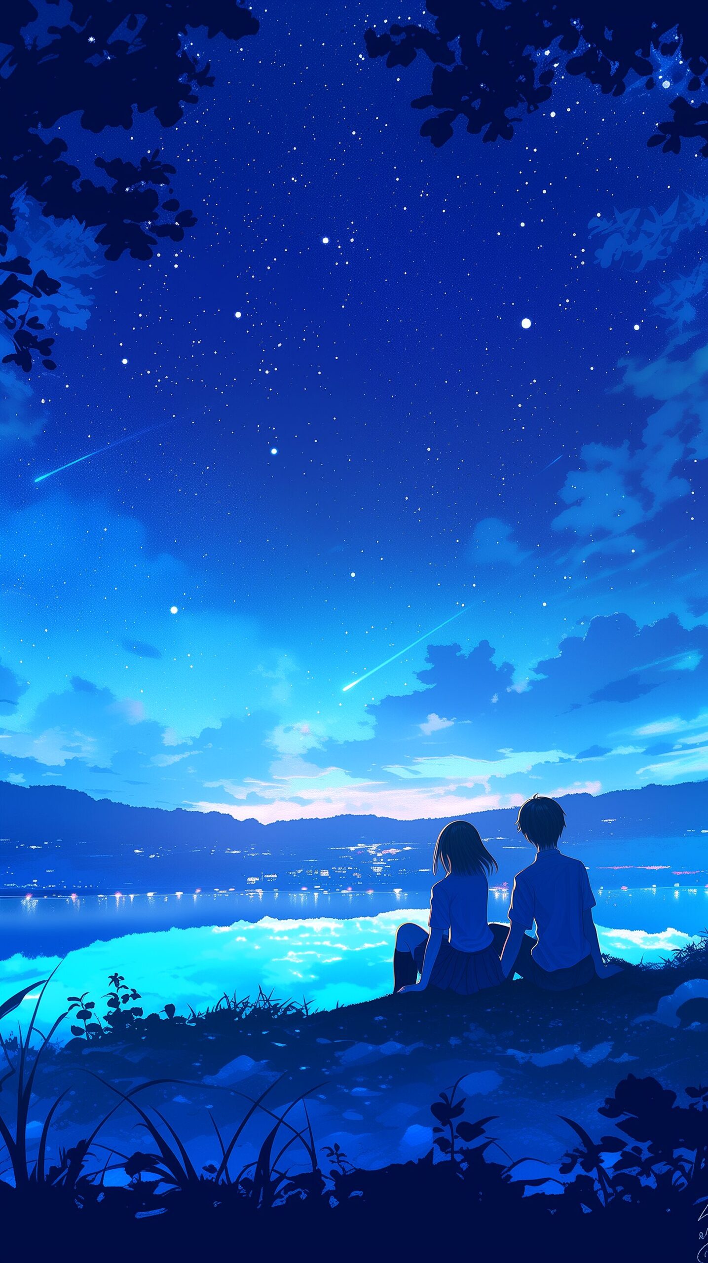 【スマホ壁紙】夏恋アコースティックver.配信記念「星空を見上げるカップルイラスト」・フリー素材