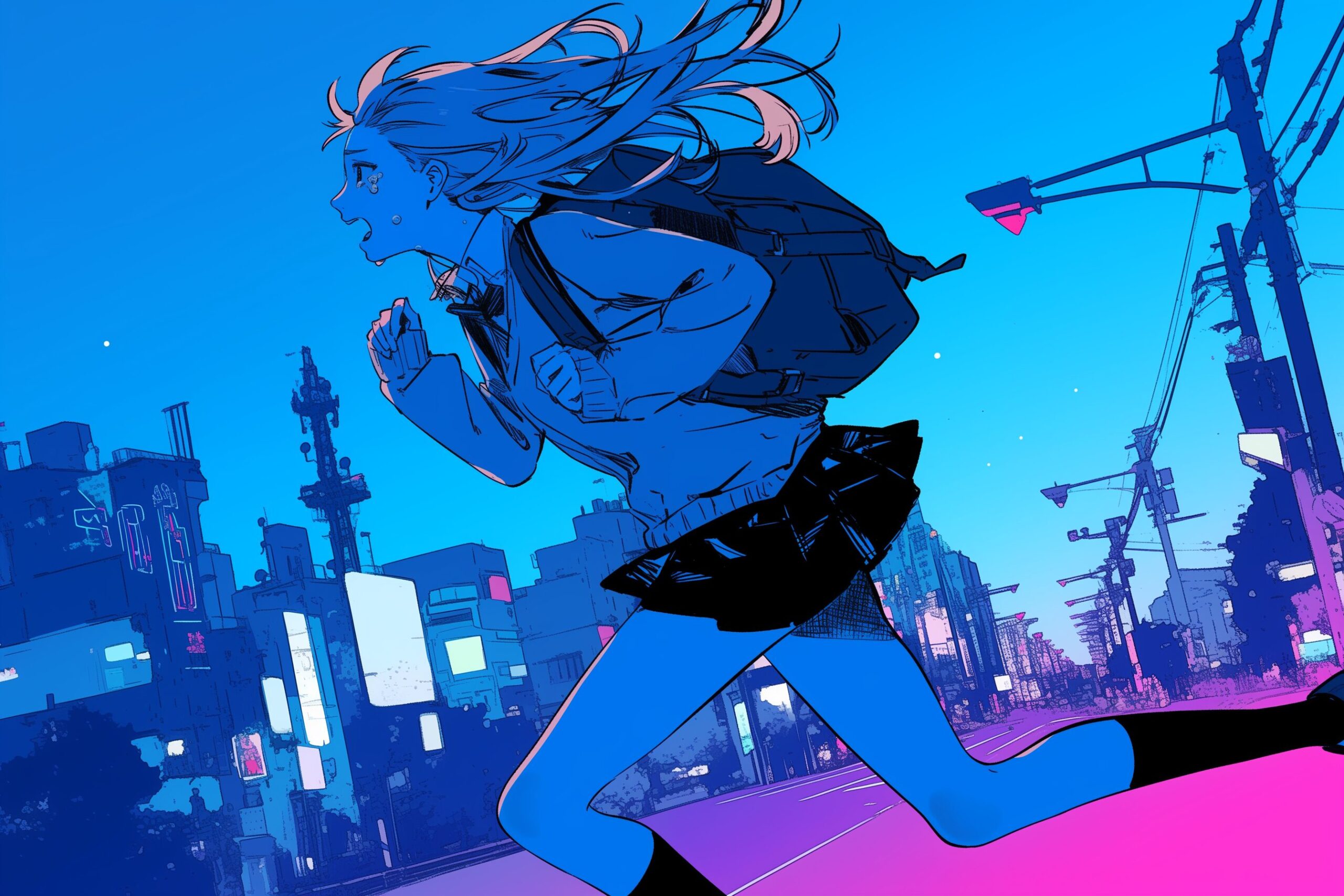 検索タグ:イラスト、ファッション、キャラクター、女性、女、女の子、女子、女の人、アニメ、漫画、マンガ、美人、美女、若い、かわいい、可愛い、カワイイ、人物、顔、美しい、綺麗、きれい、キレイ、アート、お洒落、女子高生、JK、挿絵、夏、春、パステルカラー、春服、インスタ、Instagram、夏、夏服、summer、fashion、サムネイル、アイキャッチ、コピースペース、走る、夜